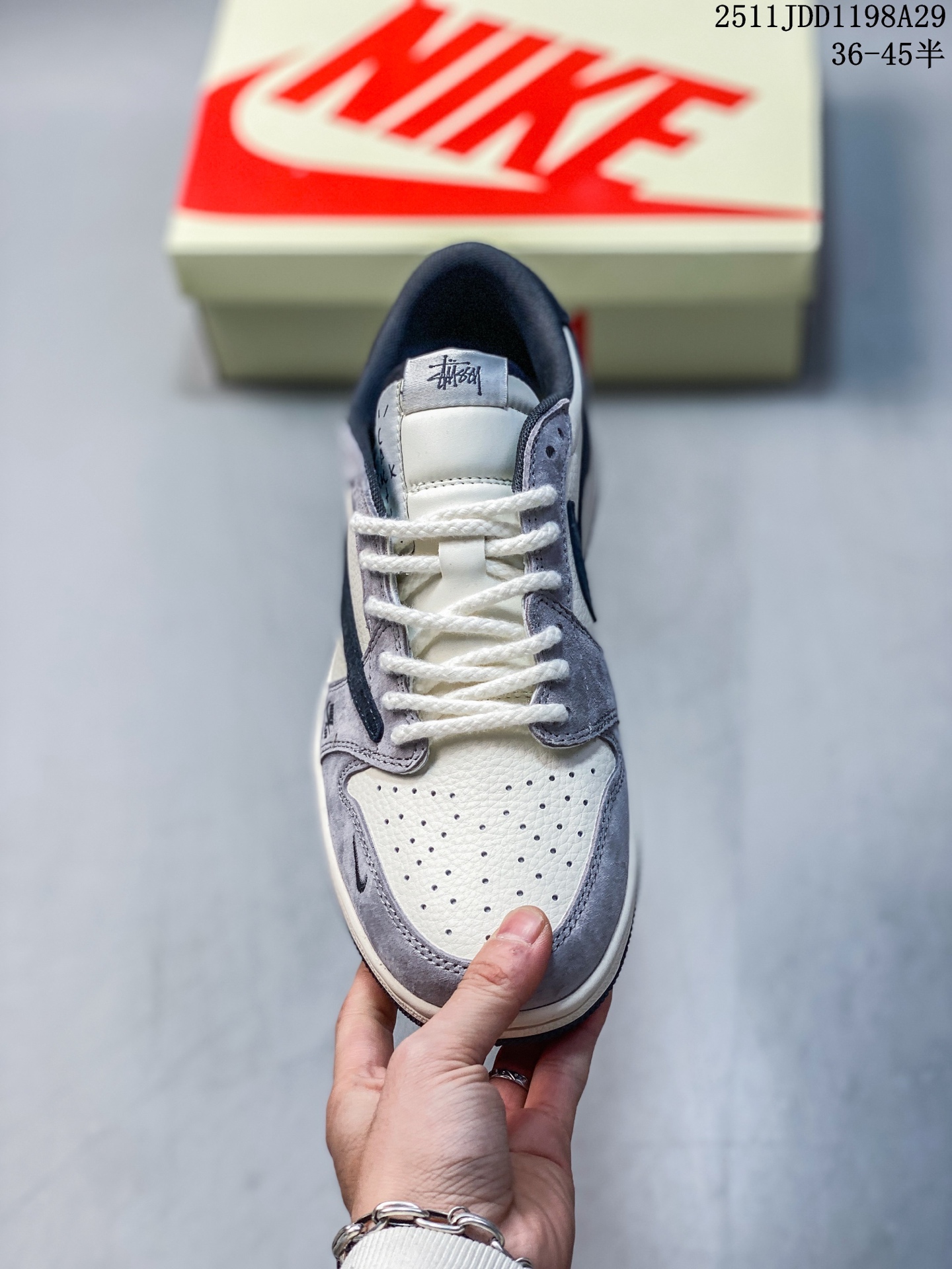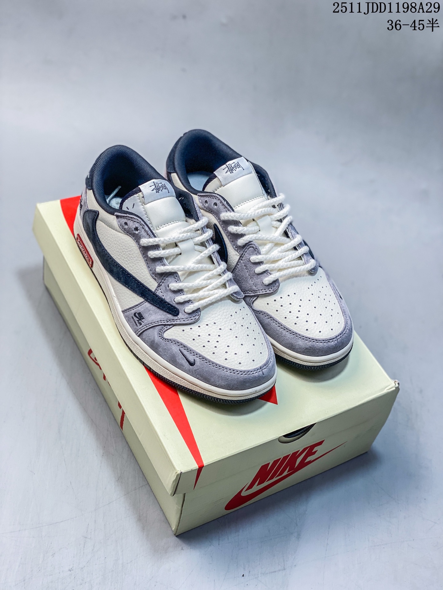 Travis Scott x Fragment Design x Jordan Air Jordan 1 Low OG SP Supreme斯图西联名 双拼米灰红标 多方联名合作融合了Travi翻毛蓝勾s Scott 独特的音乐风格 藤原浩个性的设计风格以及Jordan品牌的经典元素 使其成为一双具有独特身份和价值的鞋子 清新而立体的外观加上联名标识更突出了其独特身份 这种配色方案显示出活力和时尚感 在视觉上引人注目 鞋身的质感和细腻的细节处理使其显得高端而格调十足 这款 倒钩 联名是设计与创意完美结合 融合多方的个性风格是一款备受瞩目的潮流鞋款 低帮休闲板鞋 定制鞋盒 大厂纯原品质出货 超高清洁度 皮料切割干净无任何毛边 细节完美