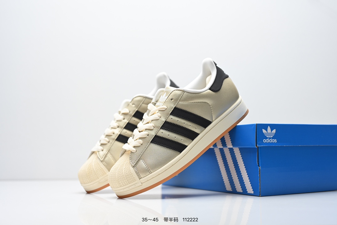 阿迪达斯adidas三叶草 Originals Superstar White Black Gold 贝壳头经典百搭休闲运动板鞋 3M反光
