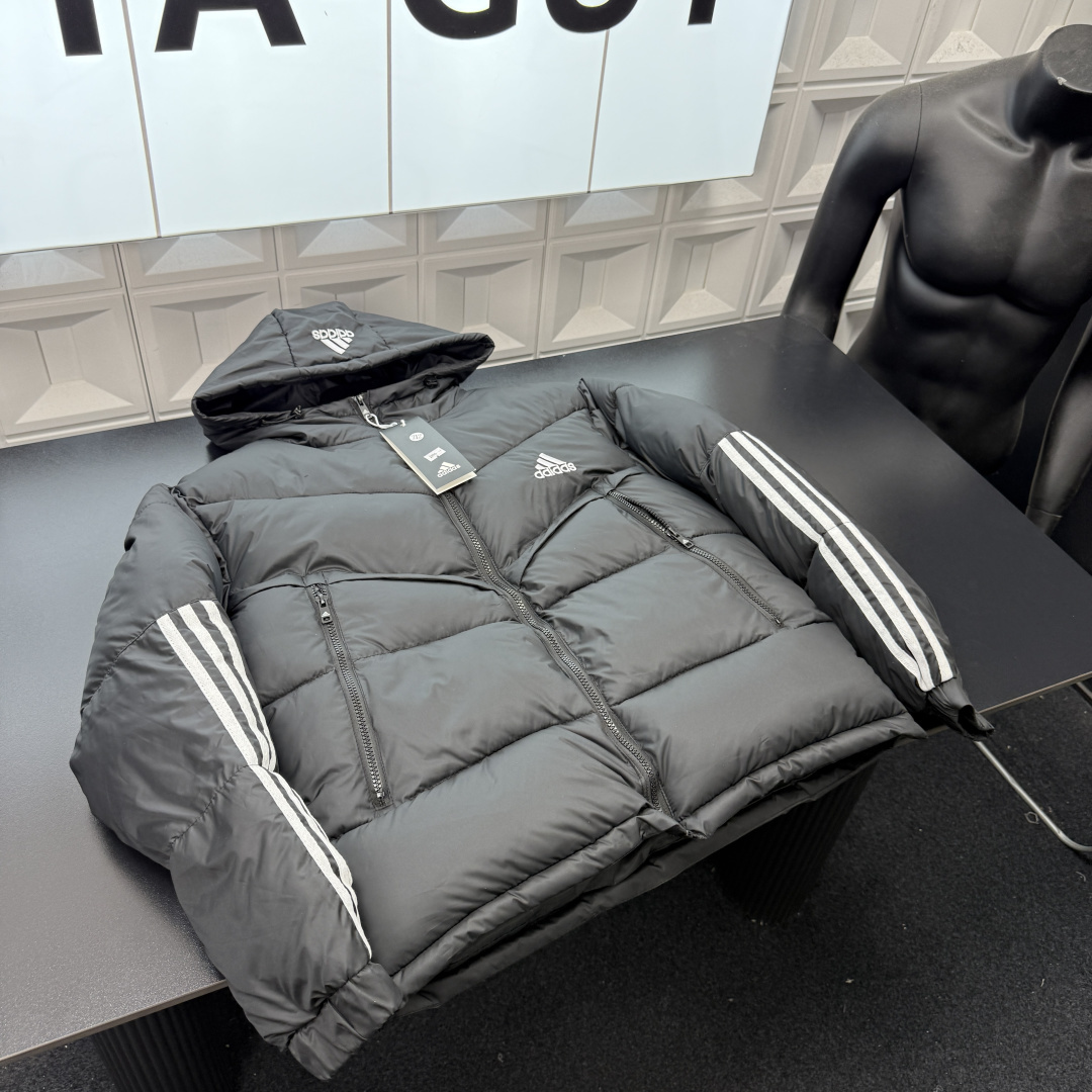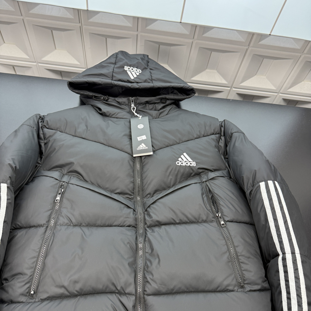 冬季热销爆款网红博主推荐款AD阿迪达斯连帽羽绒棉服 拼接撞色 断接三条杠 刺绣Logo 大口袋飞行服 三标齐全官网一致 放大看细节原相机实物拍摄 颜色 黑色 尺码 L 4xl L 80 105斤 XL 105 120斤 2XL 120 140斤 3XL 140 160斤 4XL 160 180斤