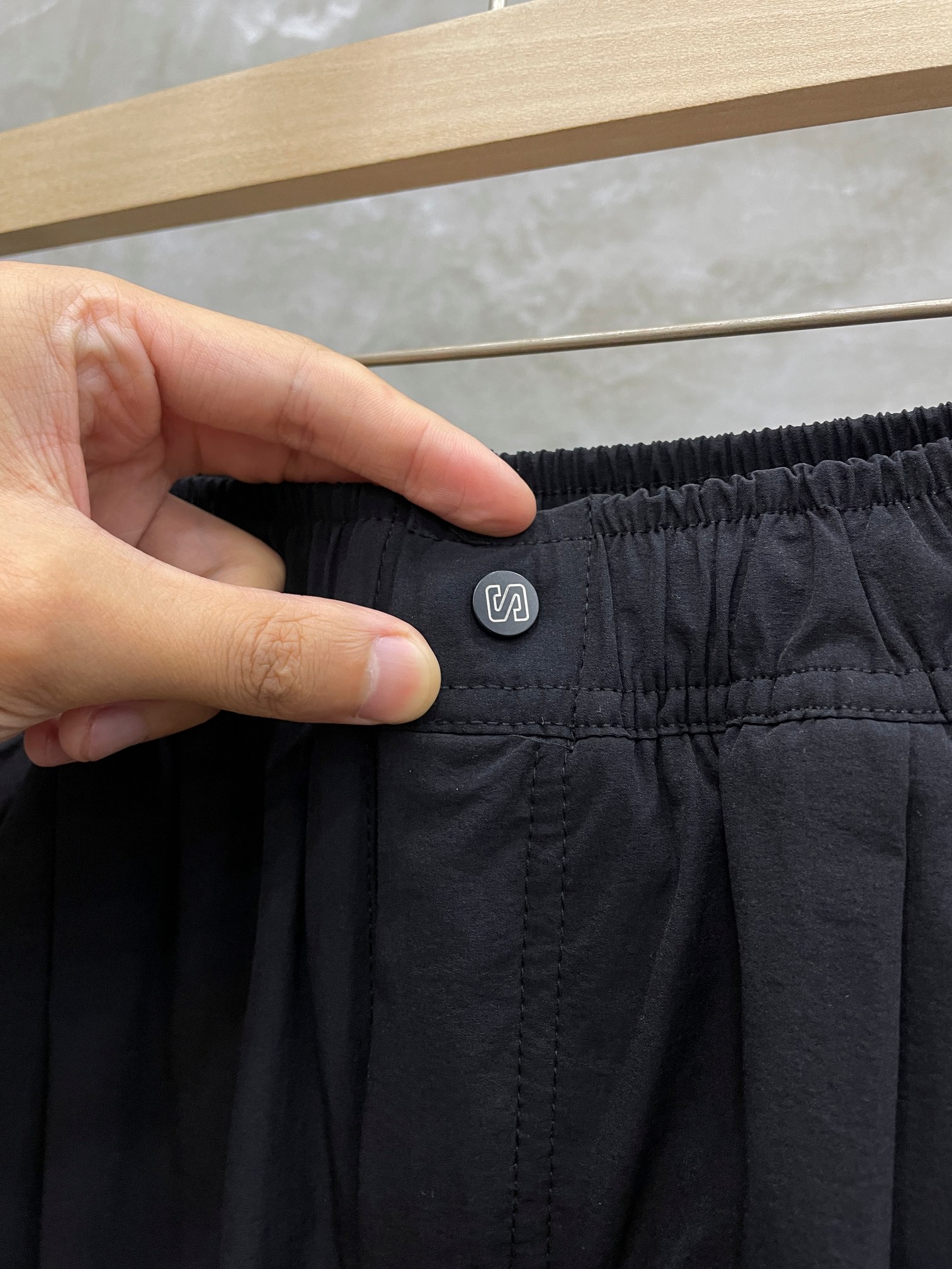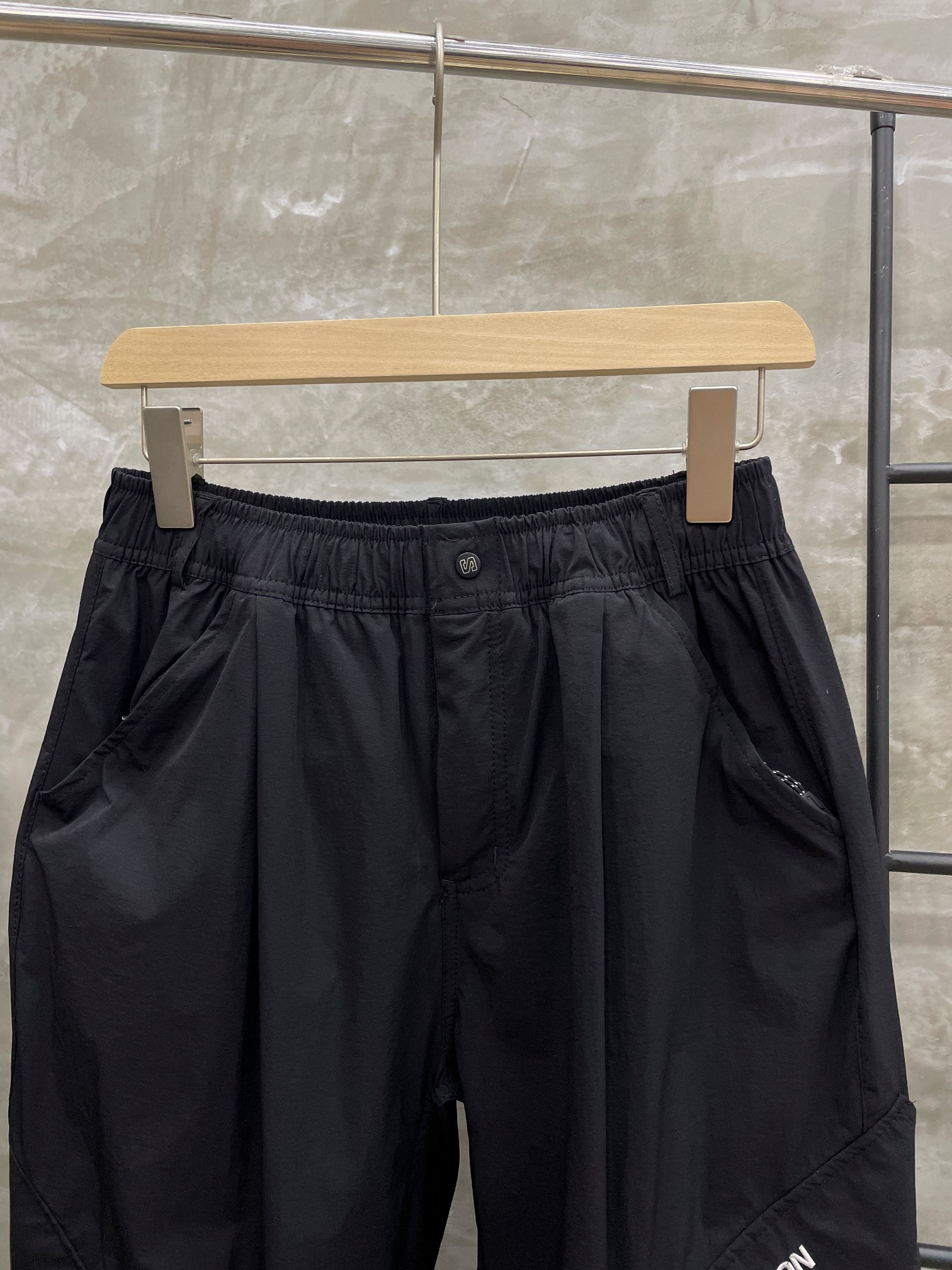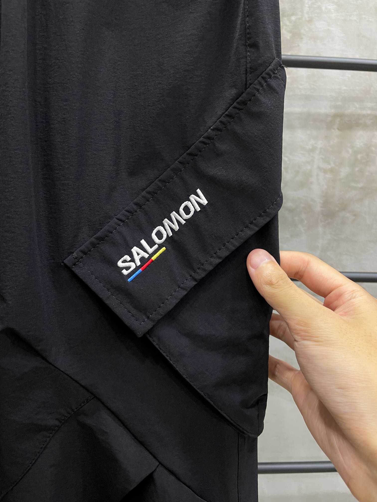 隐藏式后腰暗袋 位于后腰右侧 采用弹力网布隔层 可安全存放手机 如iPhone 15 Pro Max 或钱包 拉链头做防滑处理 便于户外盲操作