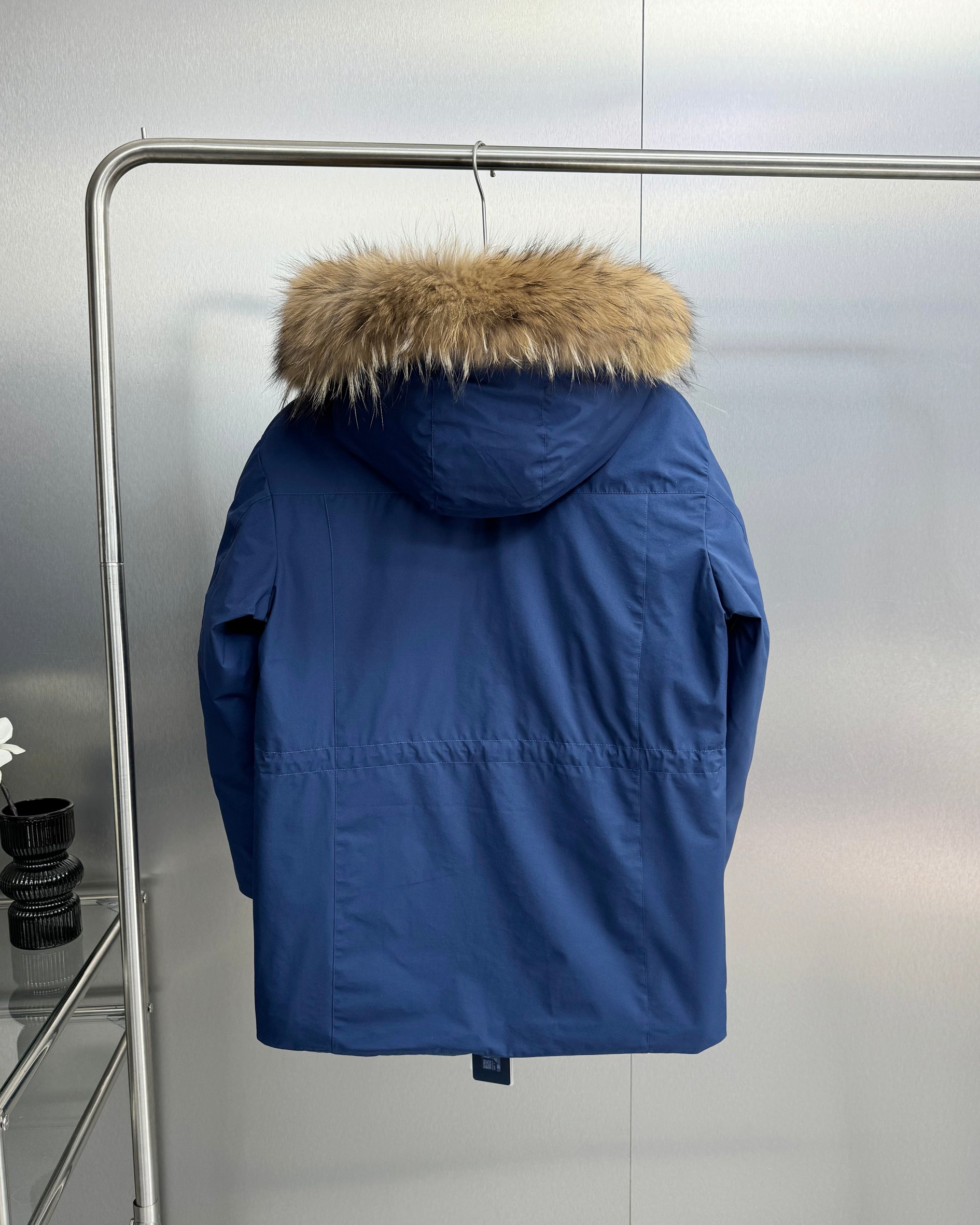 柔软真皮草毛领 大大的一整根貉子毛领 不仅挡风保暖 更加的显奢华质感 一眼贵价羽绒服