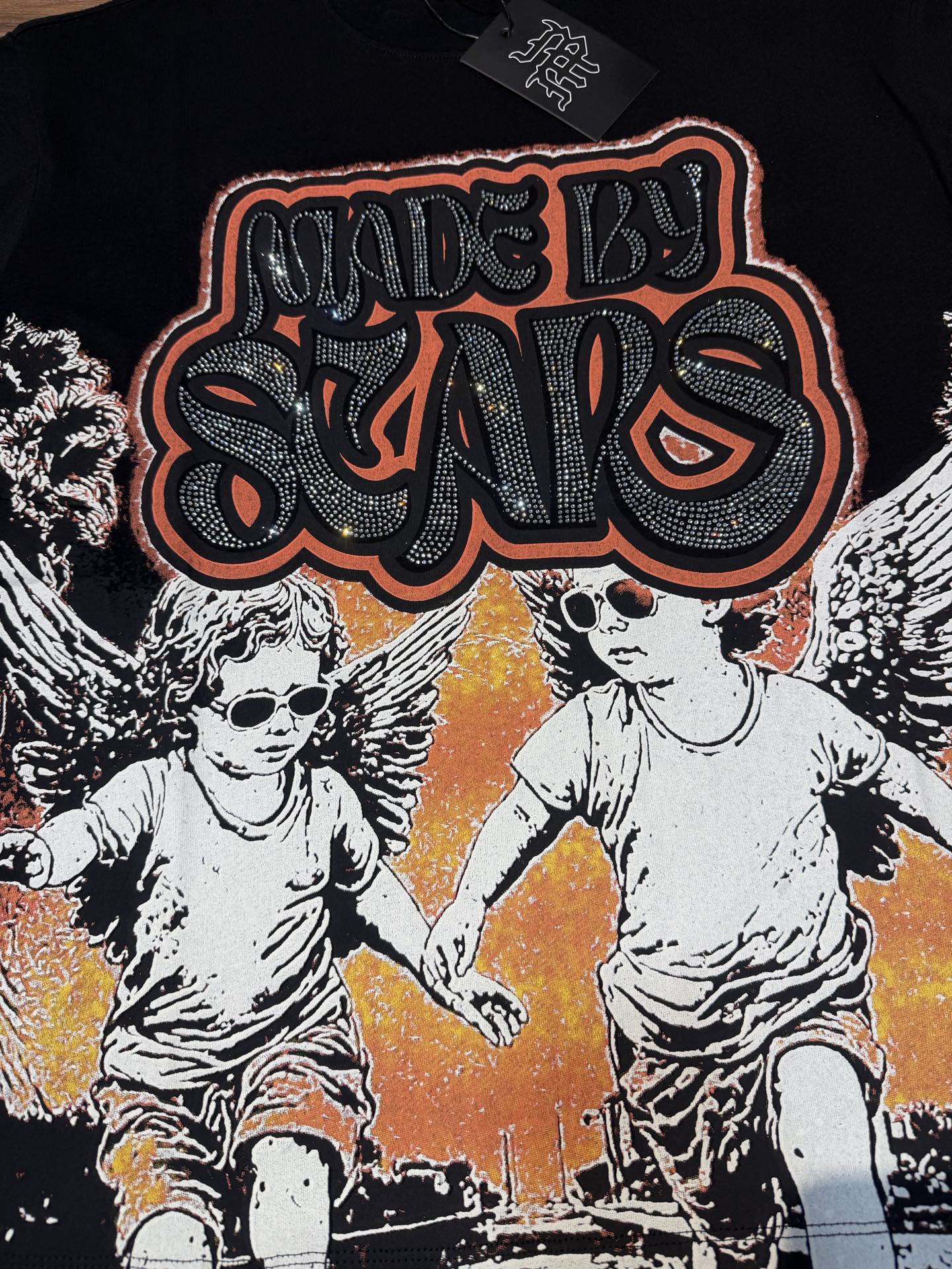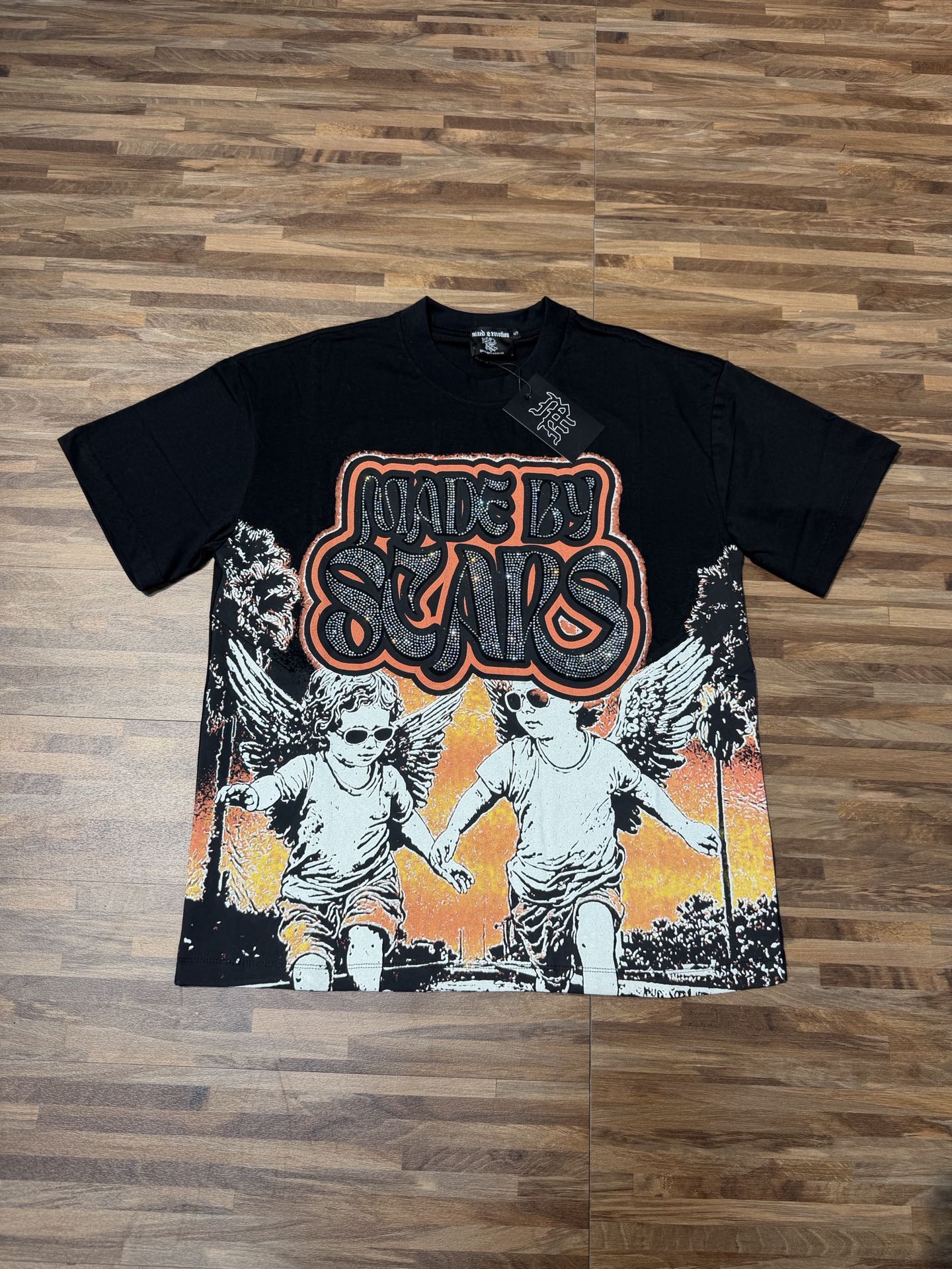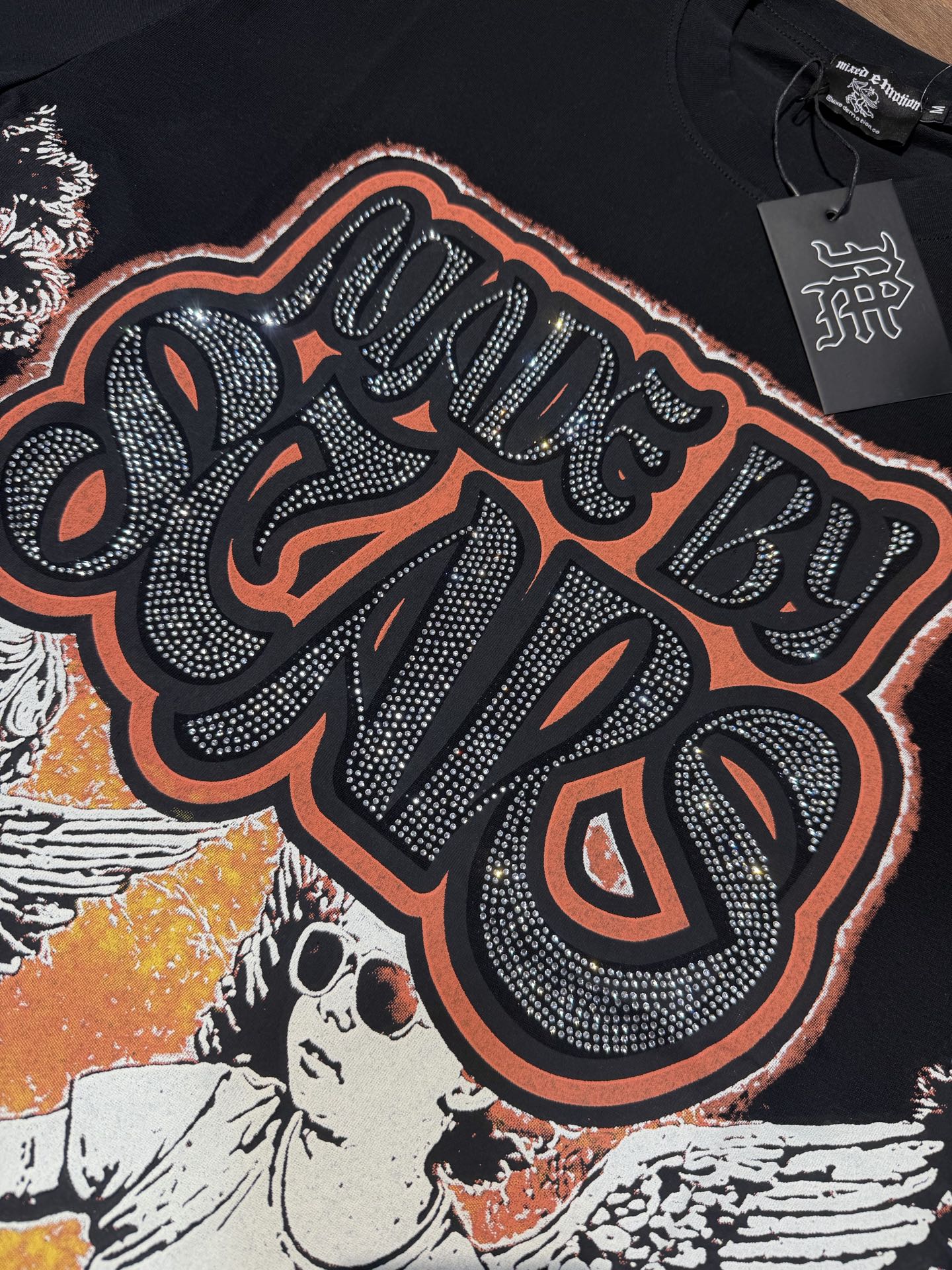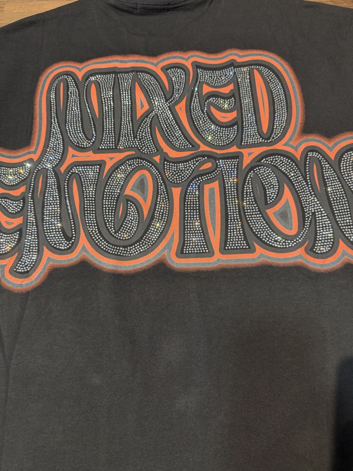 活性黑色 MIXED EMOTION 现货实拍 美式潮牌宽松休闲T恤 面料 fabric 32支270克重精梳双纱纯棉 码数 size S M L X L 工艺 高清印花 烫压 中东进口A钻 颜色 colour 活性黑色
