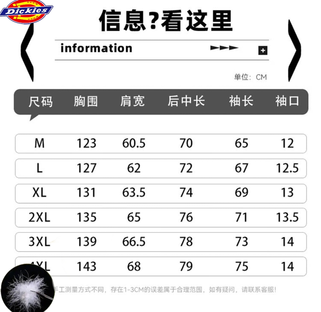 迪克斯Dickies冬季新款 男女同款格子拼接假两件白鸭绒水 428809