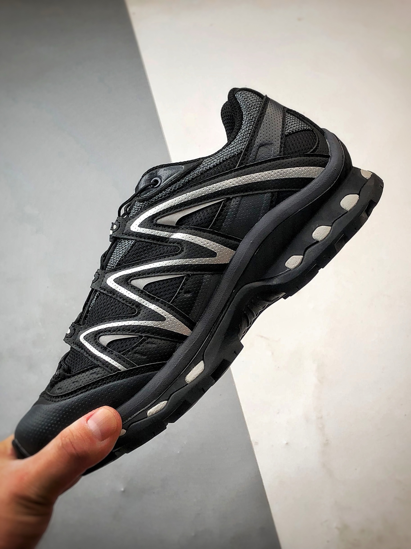 纯原外贸平台特供订单 耗时半年巨作 全套原纸板楦头开发 原厂特供网布配套加持 确保原汁原味 完美呈现版型 原档数据独家私模五层组合大底 男女鞋同步官方开发至46 5 原装Ortholite轻量化鞋垫 中底布带钢印编号 原厂TPU锁扣 进口港宝加持 后跟自然饱满 还原公司包裹性 基于 SALOMON 初代 XT 鞋身造型并搭载 4D ADVANCED CHASSIS 大底打造而成 为这款 XT QUEST 带来了多项足部控制与保护等功能性 如在运动过程中控制左右晃动的过程而提高稳定性 改善长途越野过程中足中到足尖的过渡 提高感知岩石的精确度以抵抗尖锐物体对脚底的伤害以及采用动态缓冲来增强穿着舒适感 从而减轻疲劳感 使 XT QUEST 成为一双舒适且安全的户外之履