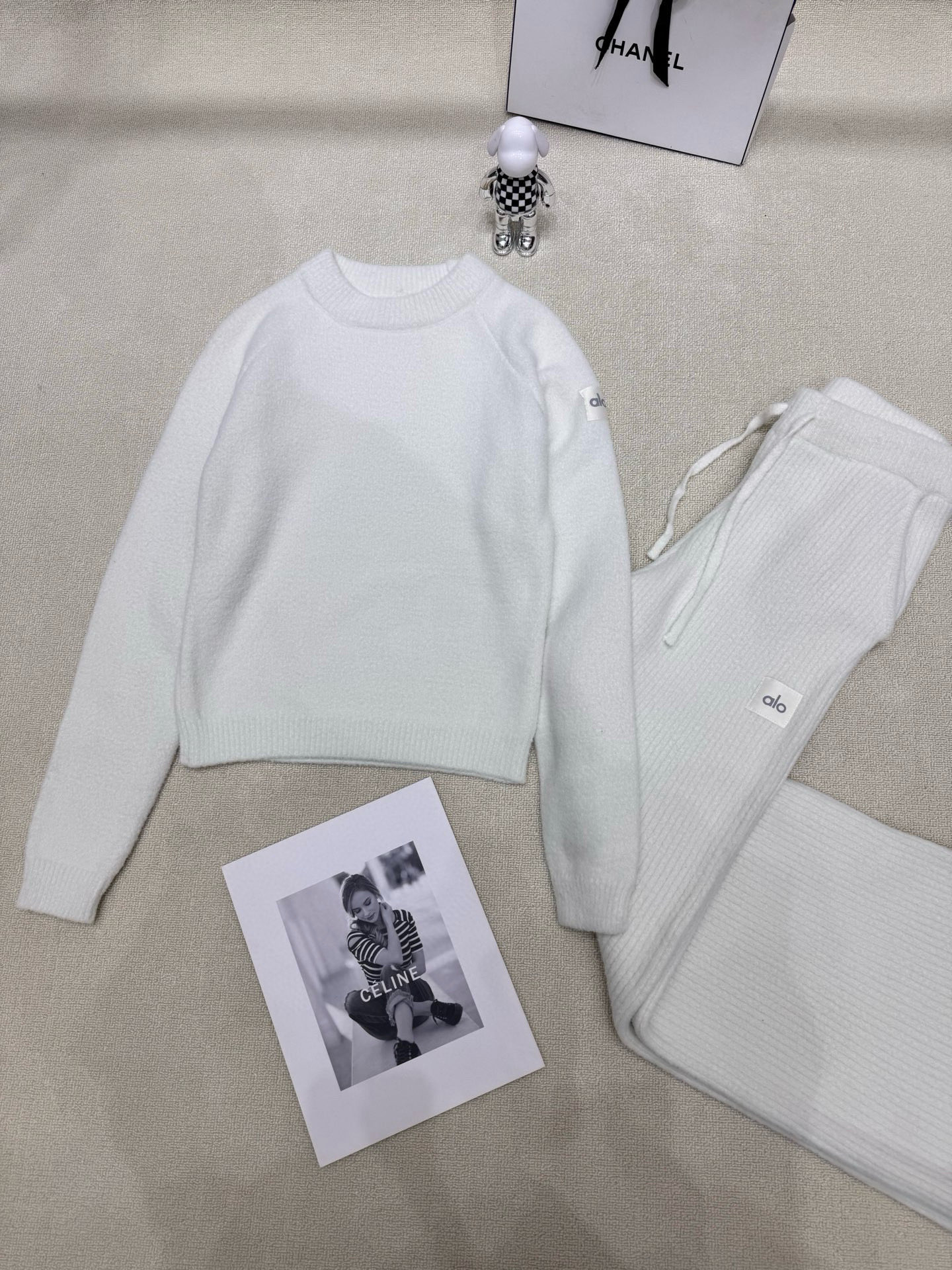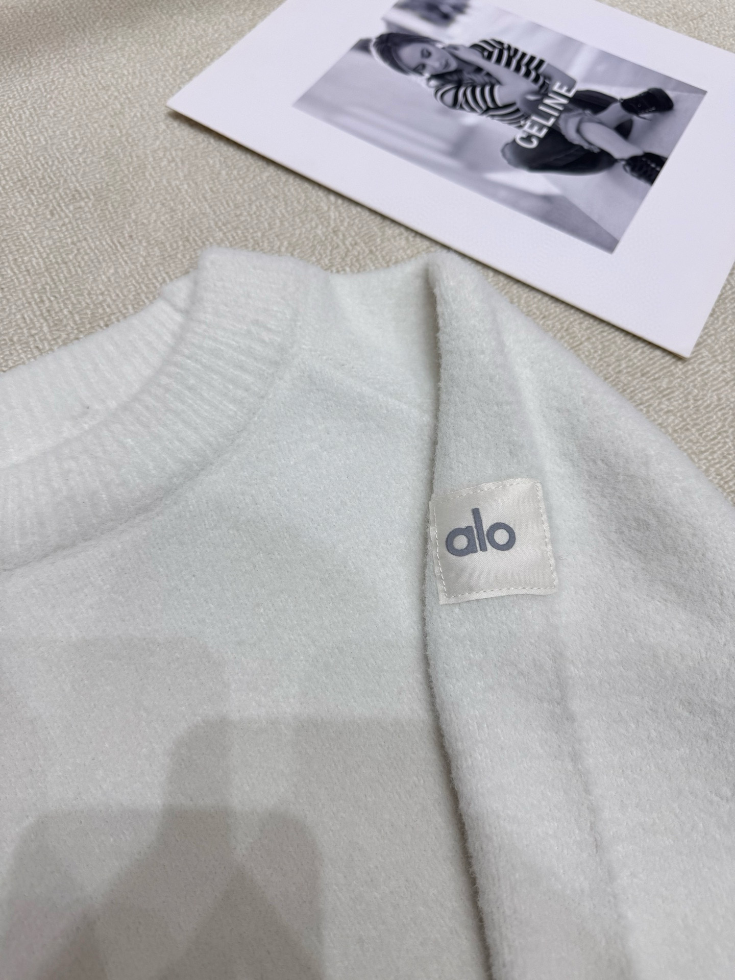 Alo定制字母布标貂毛软糯圆领长袖针织毛衣 款号 25670 383592