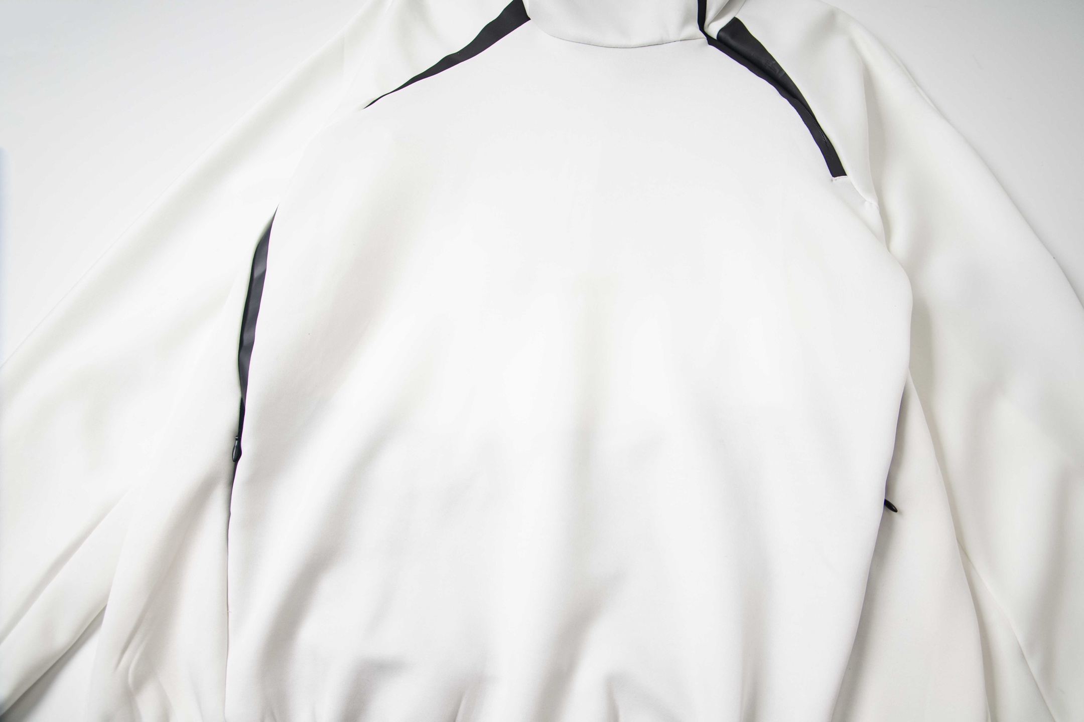 整件衣服采用不对称拉链半开襟设计 全部橡皮筋包条 面料宽松舒适有弹性时尚元素拉满 这个新联名很像太空时代的产物