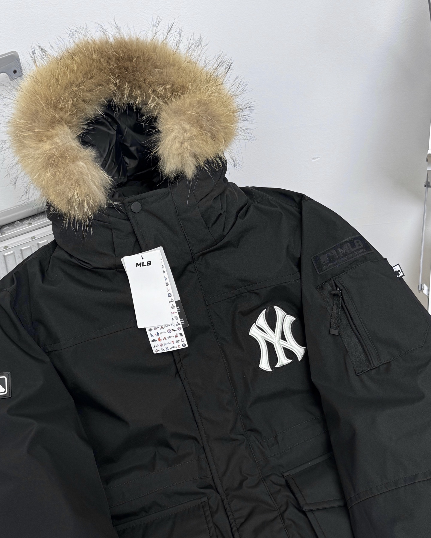 265195160 - 细节图 两色 MLB 纽约洋基队大毛领连帽加厚羽绒服冬季 401247