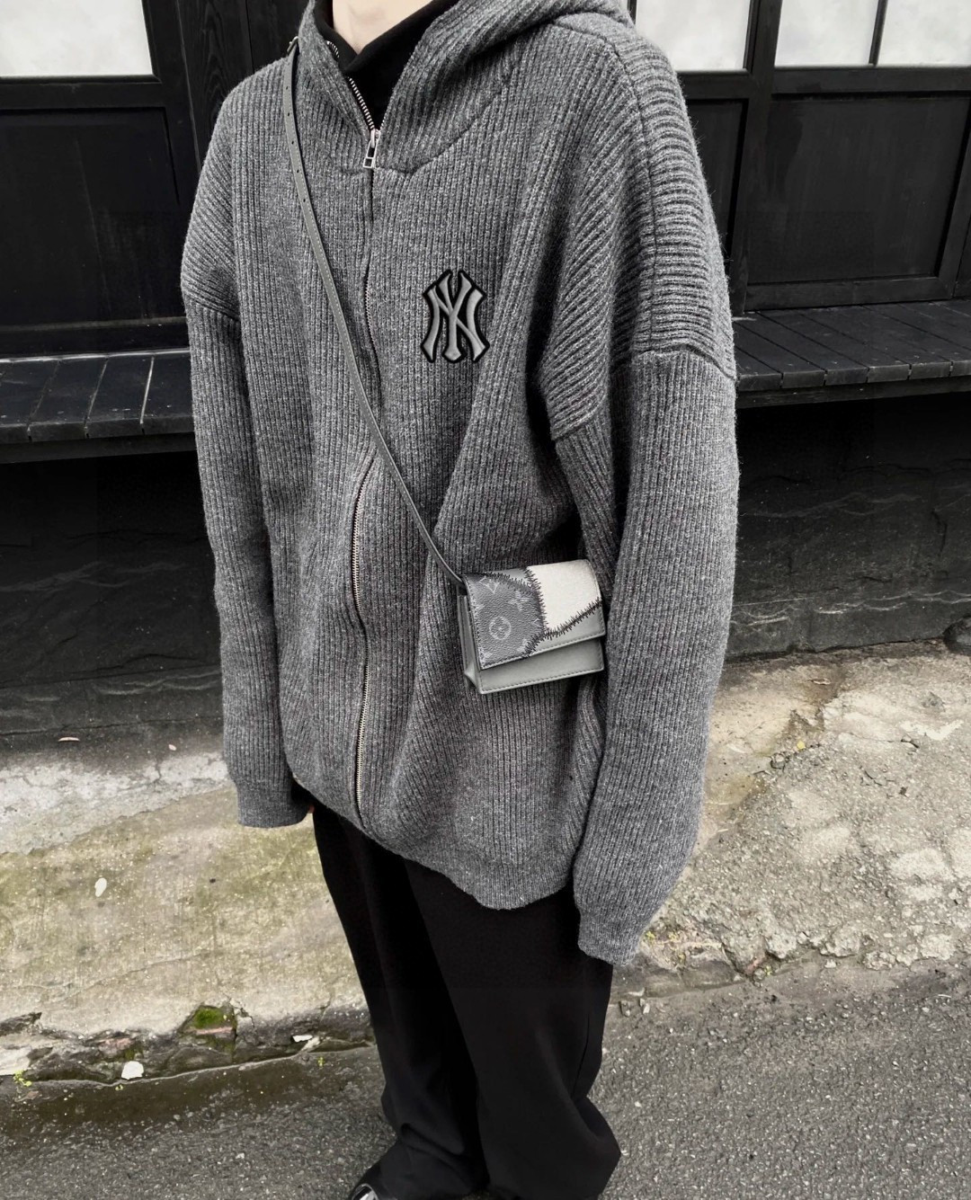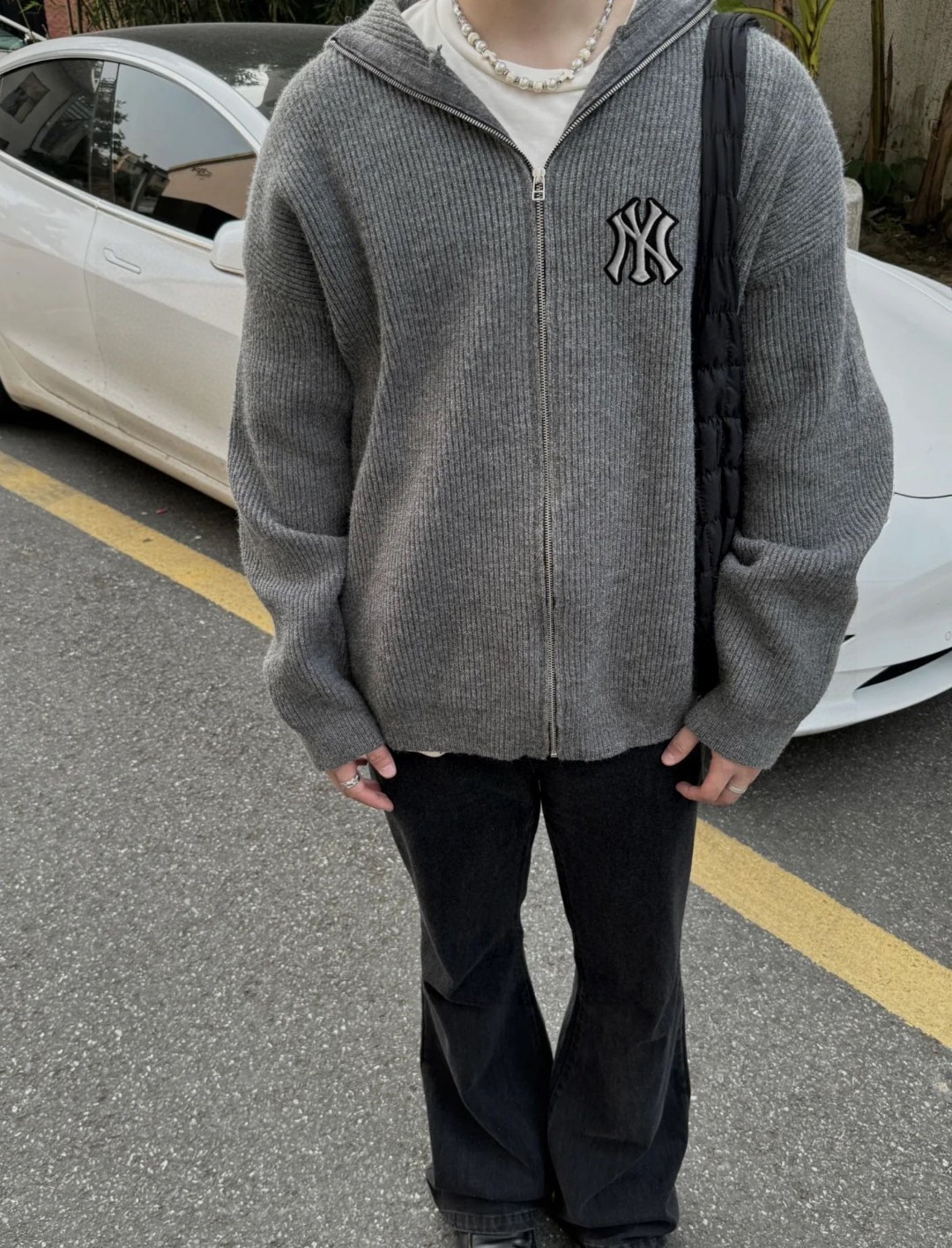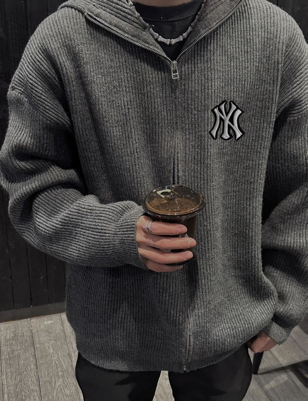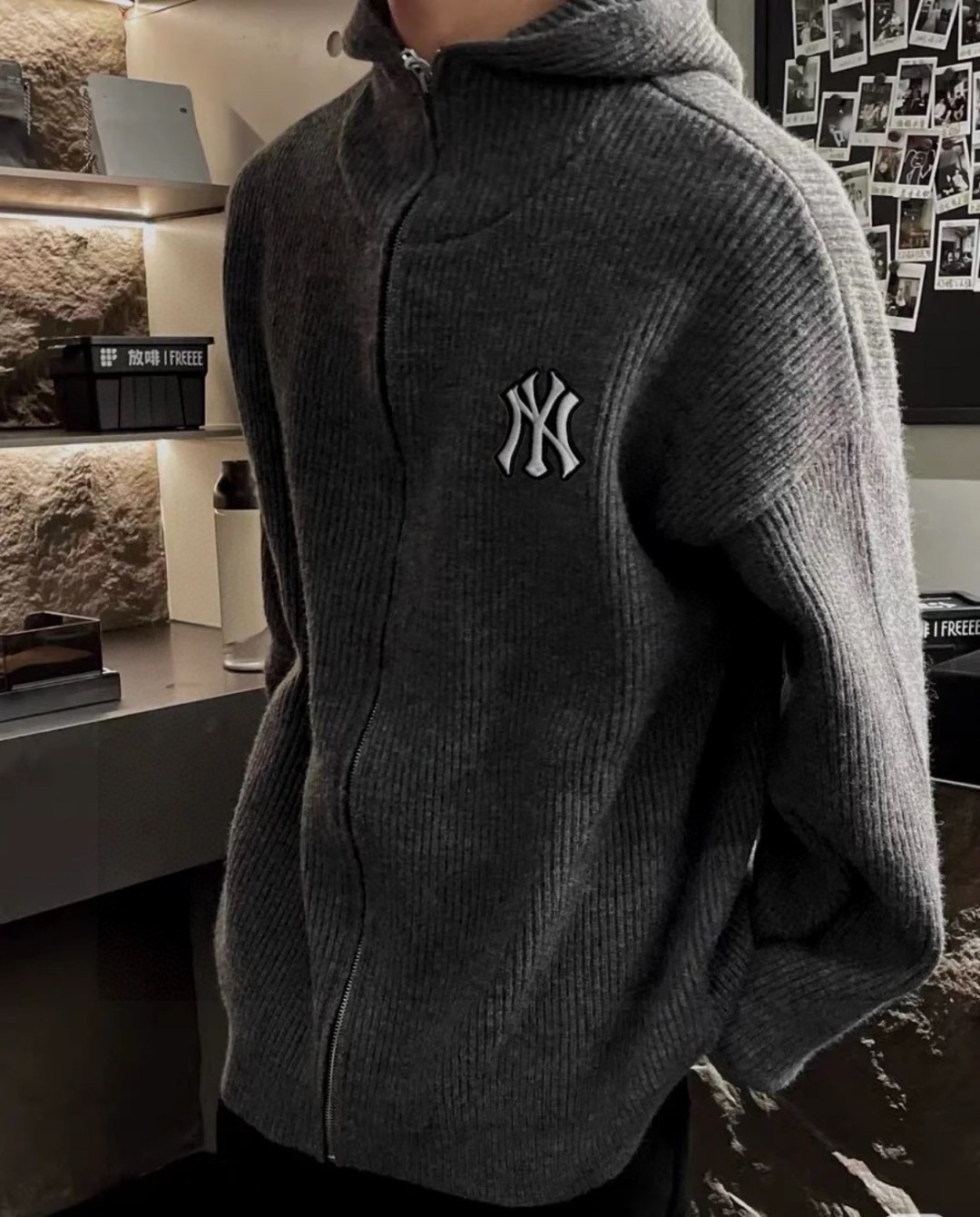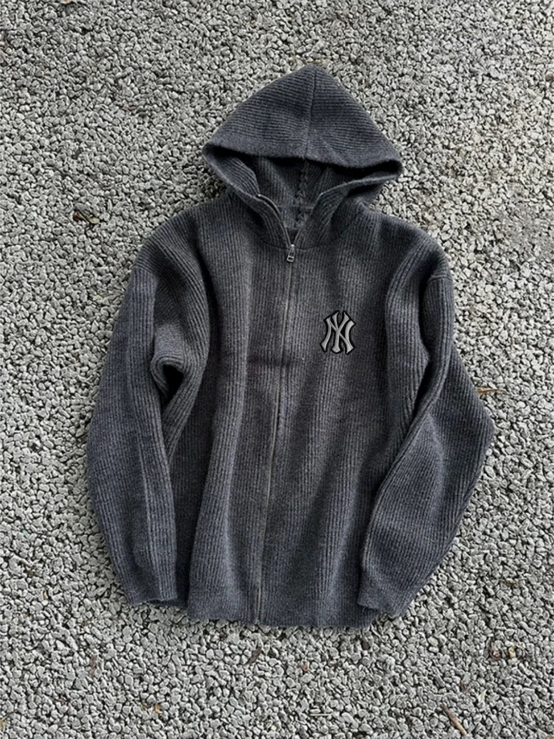 125128934 - 洋基队MLB复古灰拉链高领毛衣连帽开衫 cleanfit慵懒 357991