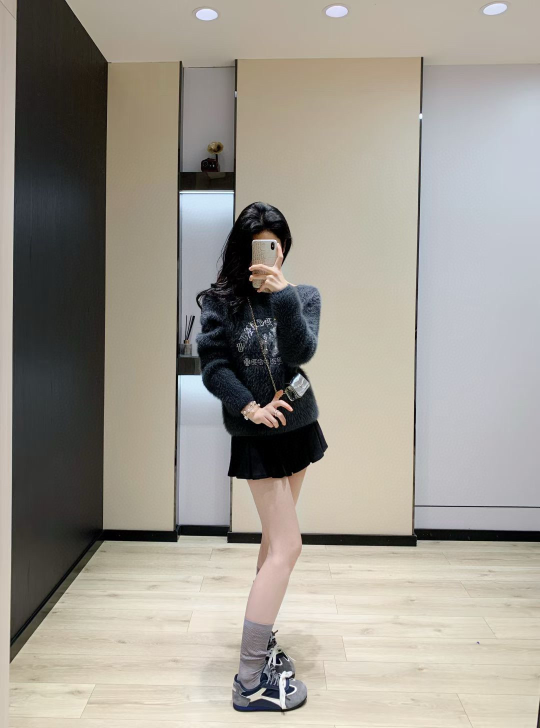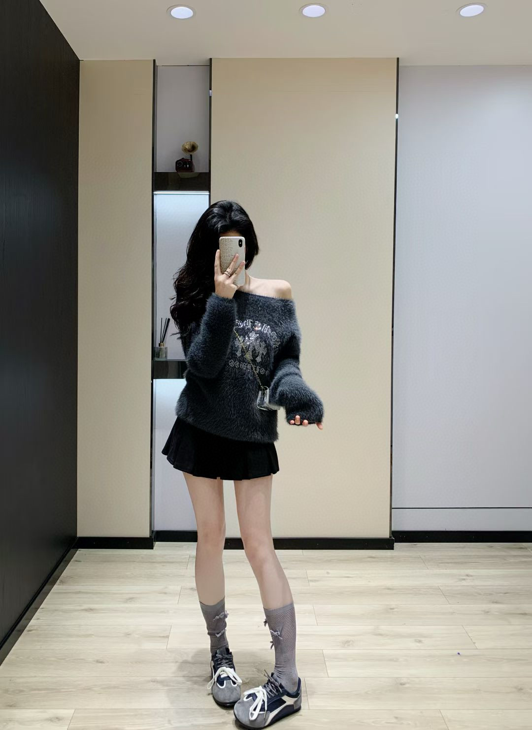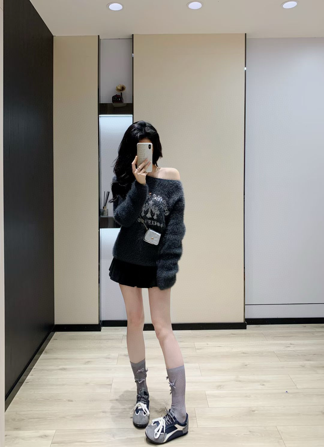 Chrome Hearts 克罗心CH十字架梵文烫钻毛毛绒一字肩针织毛衣