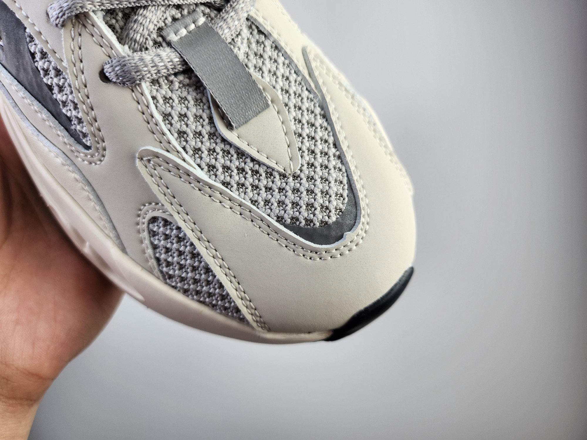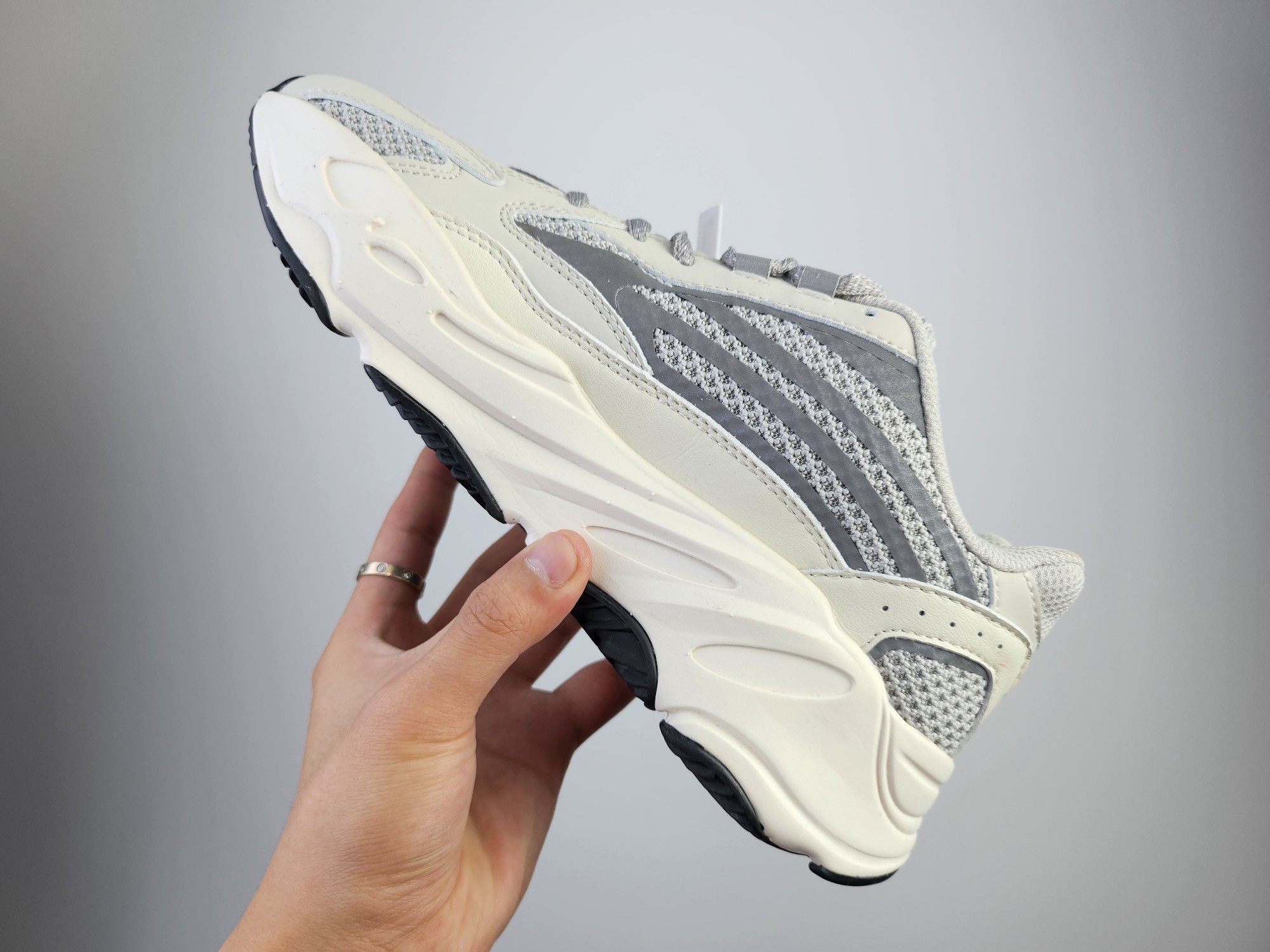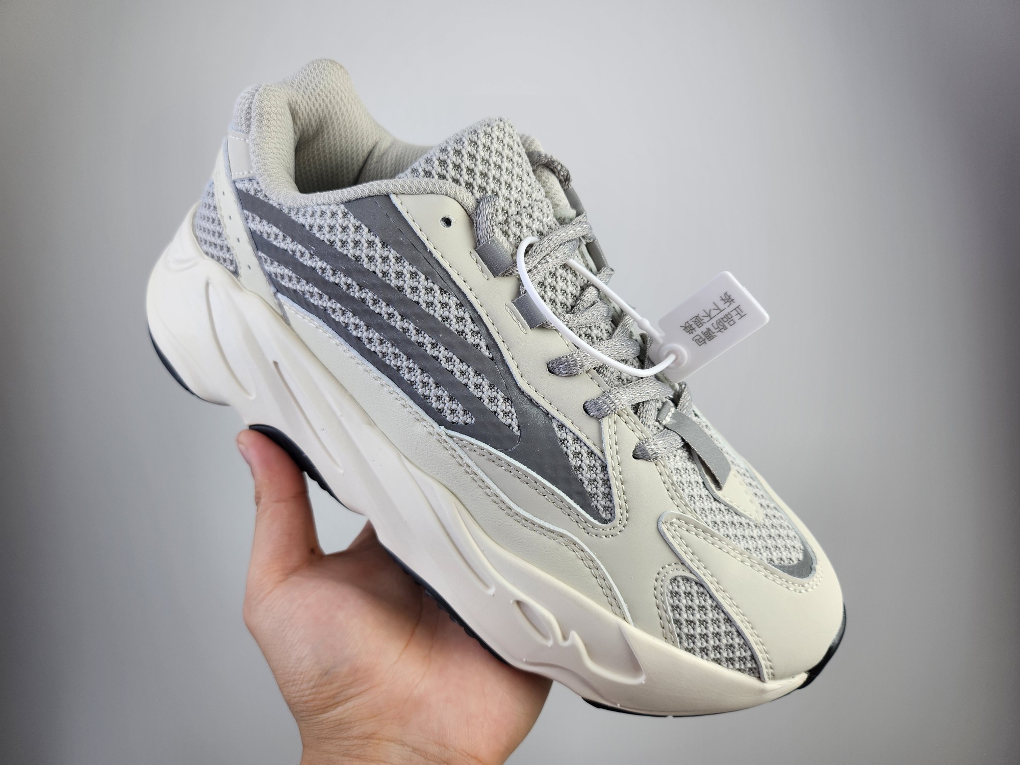 特价真爆 阿迪达斯 Adidas Yeezy Boost 3M反光条身 椰子700 侃爷椰子复古休闲运动老爹鞋 灰白 采用麂皮 皮革 网布三种材质组成 鞋面置有反光元素 鞋身非常纯粹 轮廓十分复古优雅 YEEZY BOOST 700的鞋底厚度提升了不少 因为中底藏有全掌Boost科技加持 提供了舒适的脚感 Size 36 45