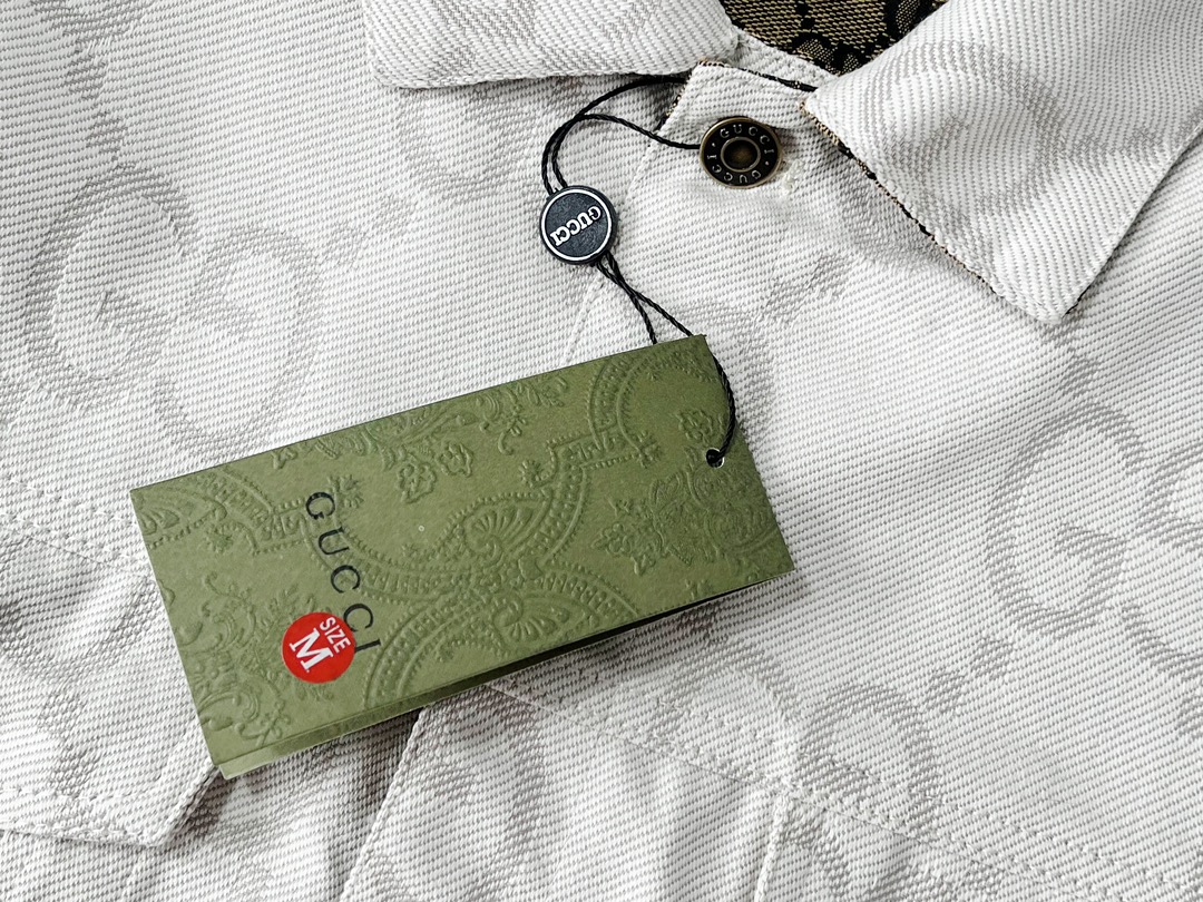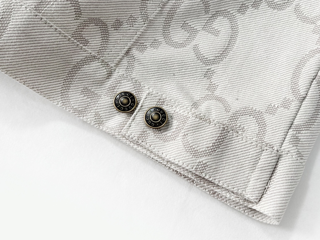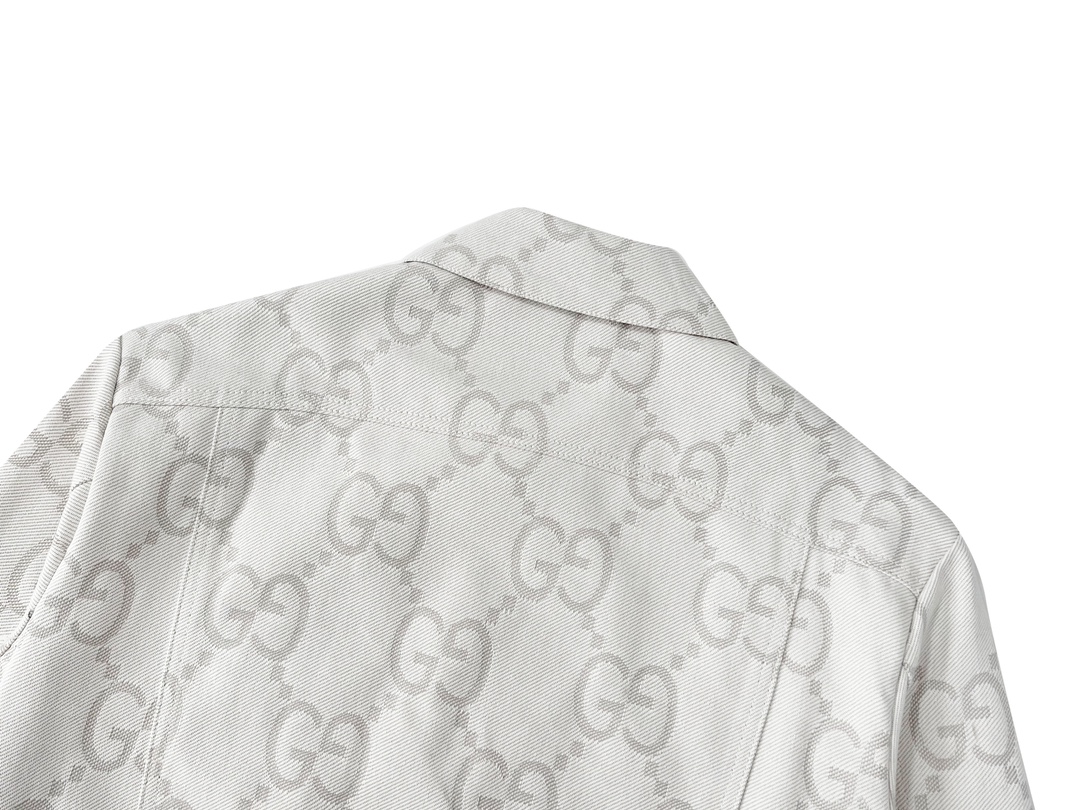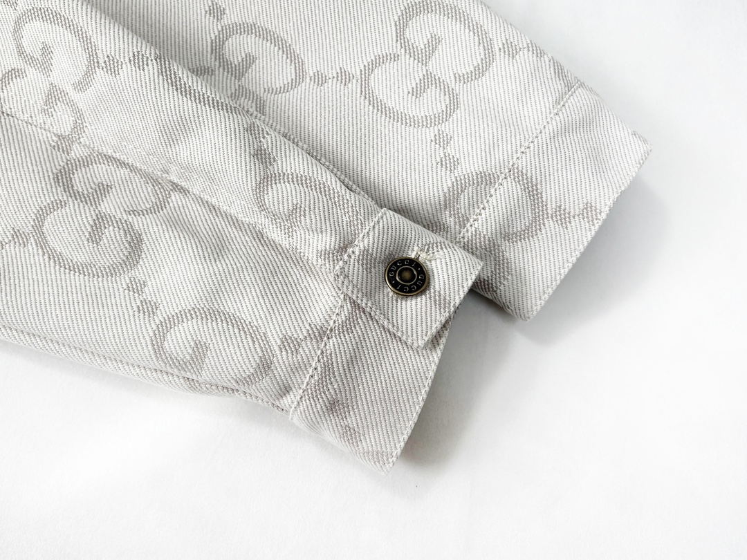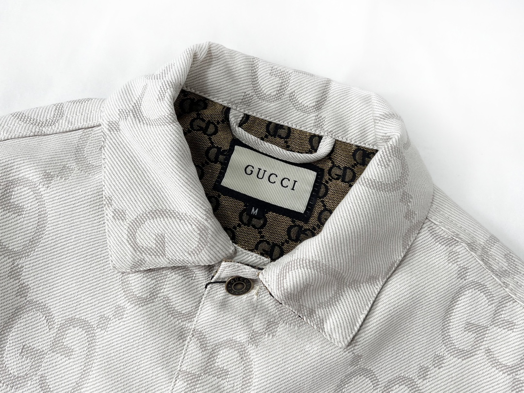 GUCCI古驰GG象牙白提花牛仔夹克 主打 满logo提花翻领牛仔外套自留私服高定款 宽松廓形裁剪设计 搭配罗家新款黑粉T恤yyds