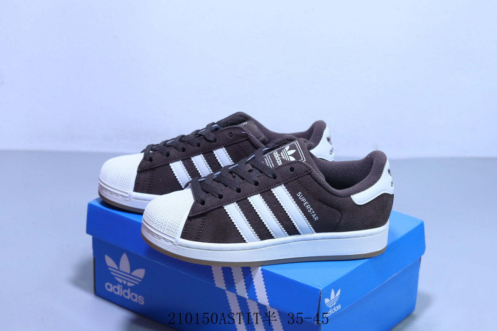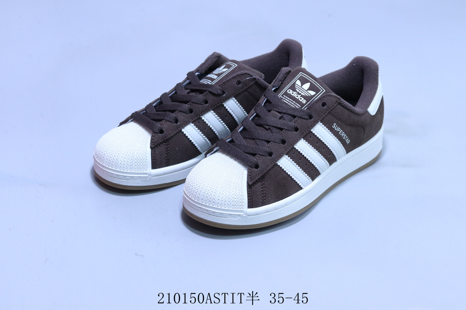 阿迪达斯adidas originals Superstar防滑耐磨轻便透气 低帮 贝壳头板鞋 棕白 210150ASTIT半 35 45