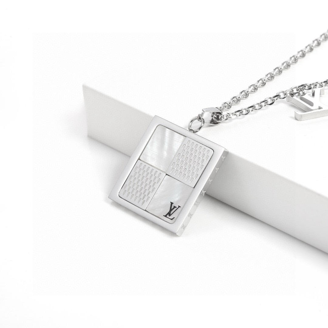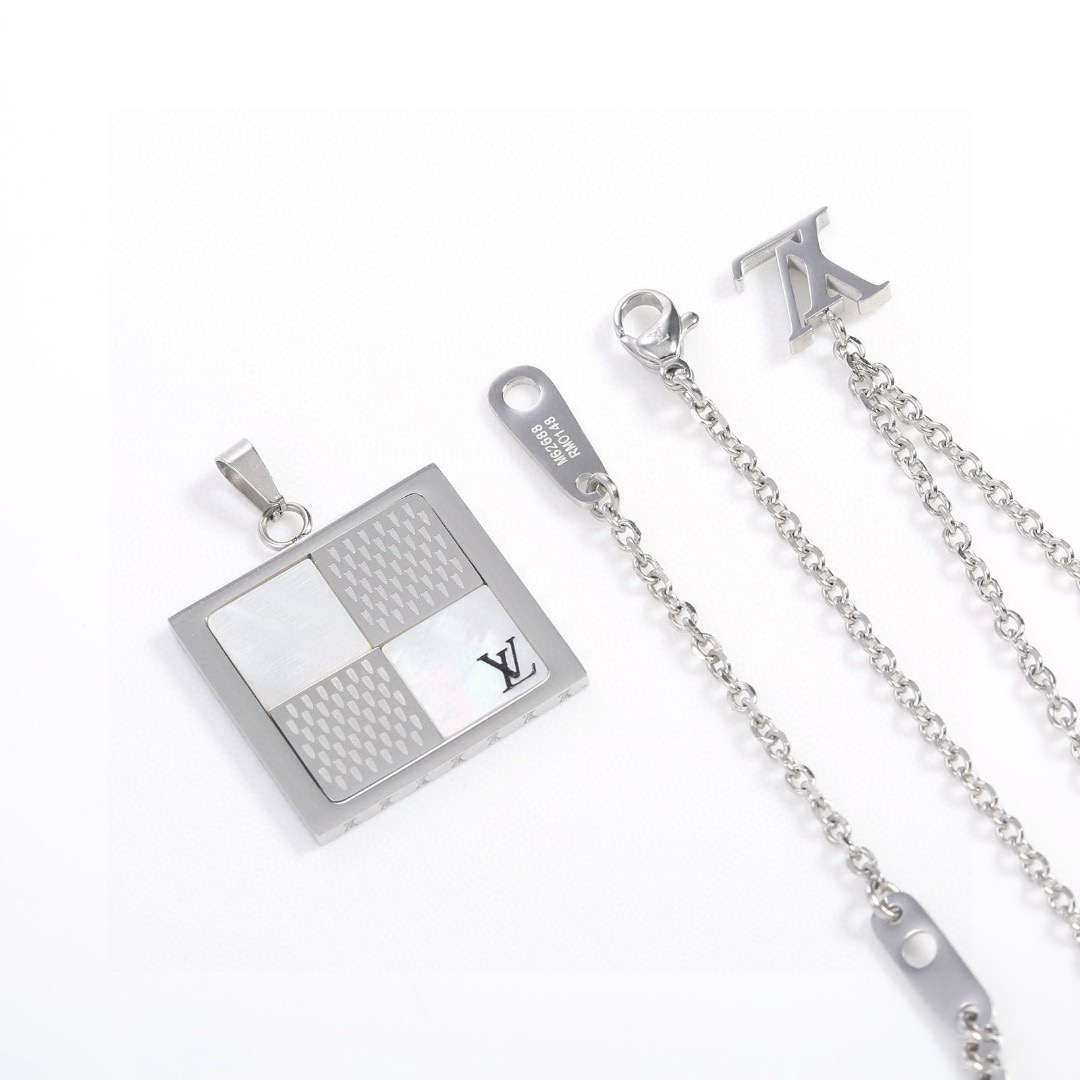 LV路易威登贝母拼色项链 官网精选专柜同步在售 型男必备 此款项链采用贝壳细节设计 精心镶嵌于吊坠的耀目框架内 气质优雅 彰显品牌繁复的精湛工艺 新年送男朋友送老公专属 礼物 正品开模LVlogo钢印对版专柜 刻字清晰可见 原版五金 厚金电镀 细节满满 全套包装 超高颜值 弄潮百搭 链长 60CM三段可调