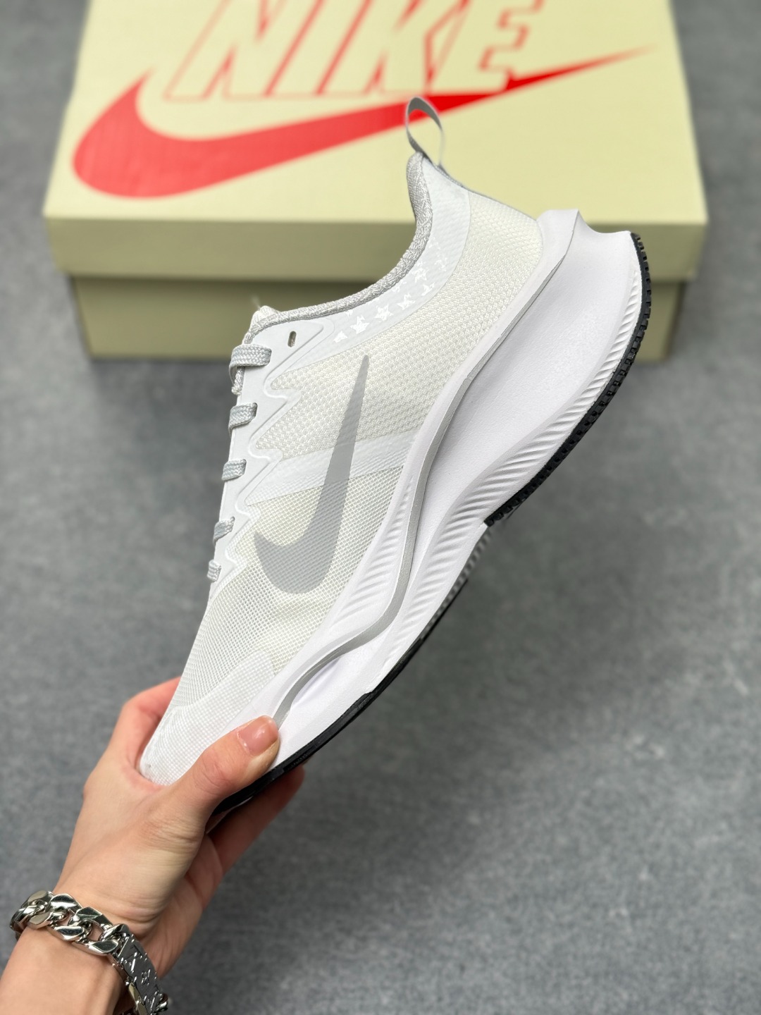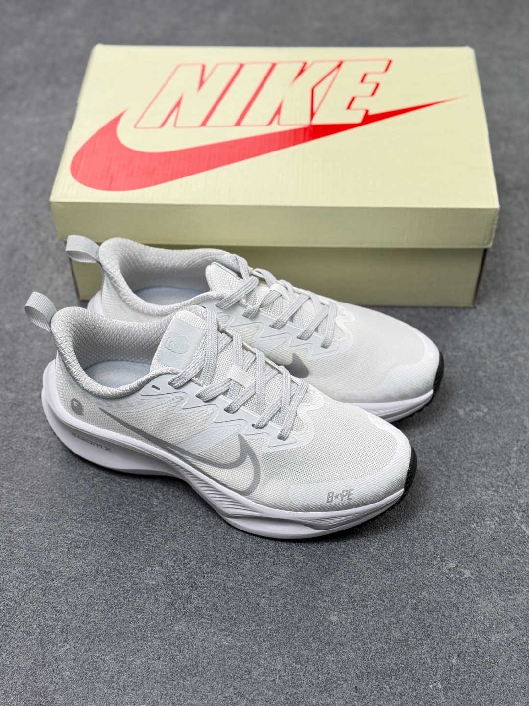 海外限售 国内首发 NIKE耐克 2025全新概念 超跑透气网面鞋训练跑步鞋Plus Zoomx 中底 超级飞马全新升级 BAPE 系列 现已全面上市 Plus 版本采用全掌ZoomX中底 其特点是轻巧且回弹性极佳 在不输传统Zoom气垫的同时 带来全新体验 ZoomX提供的回弹反馈非常显著 给人一种推动感 这也是ZoomX相较于传统Zoom气垫的显著优势 Zoom气垫需要一定的磨合和个人力量才能完全体验其效果 而ZoomX则是即刻可用的