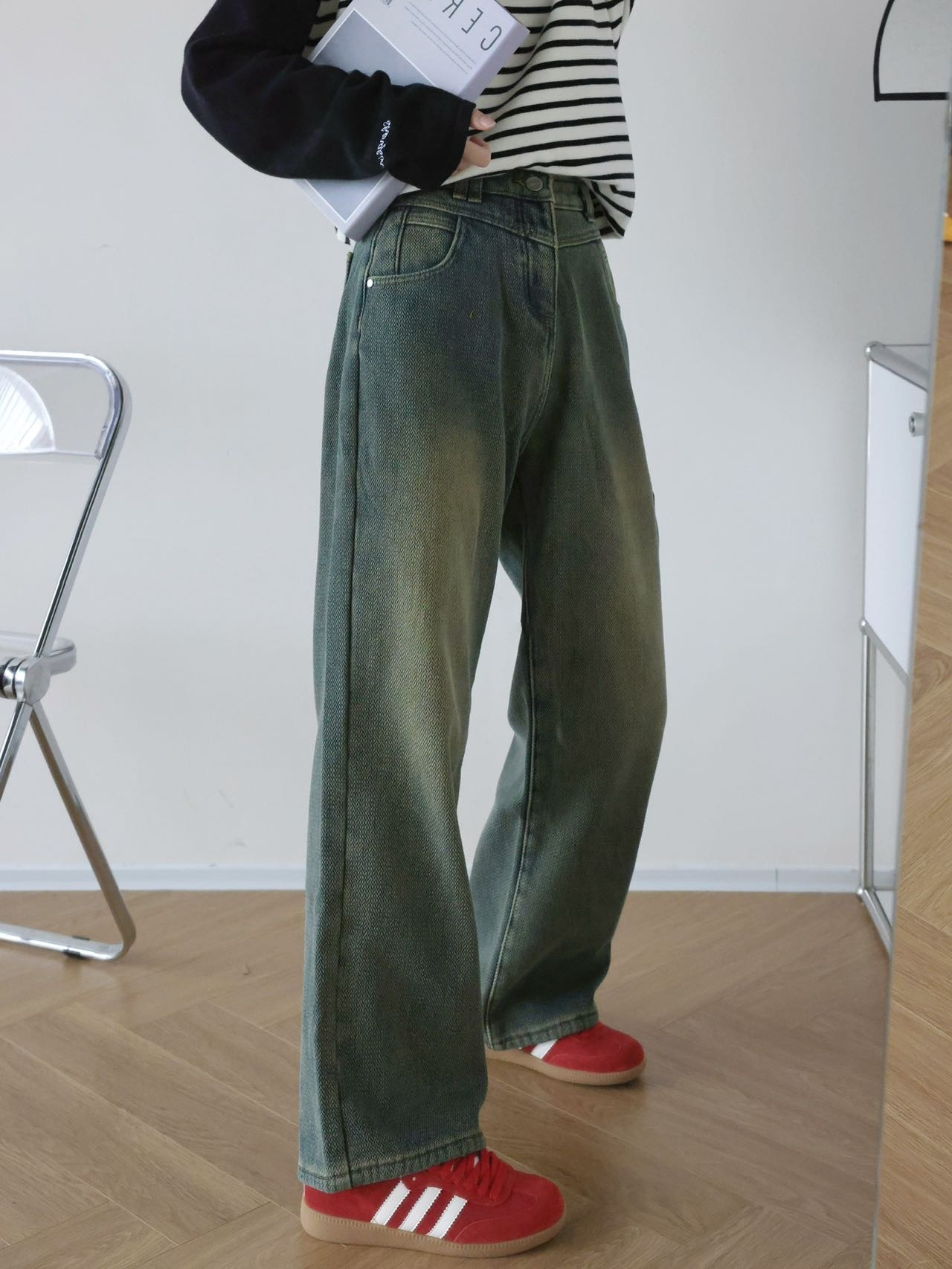 冬日限定来啦 加绒牛仔裤 让你整个冬天暖暖哒 保暖锁温 寒风再冷也完全不怕 再加上定制星空纹设计 超时髦 很有辨识度 复古做旧水洗 高腰宽松型 修饰身材比例 显高又显瘦 巨好穿 当之 无愧的卷王 在冬天也能轻松显瘦显高 高腰结合阔腿的版型设计 修饰身形比例 拉长腿部线条 无痛立得超模腿 显瘦效果杠杠的 半侧缝线前倾设计 时髦高阶 尽显高级感 主打一个气质挂