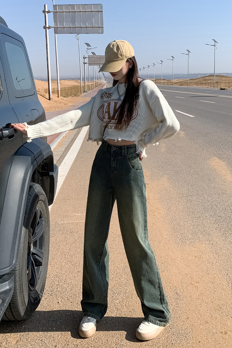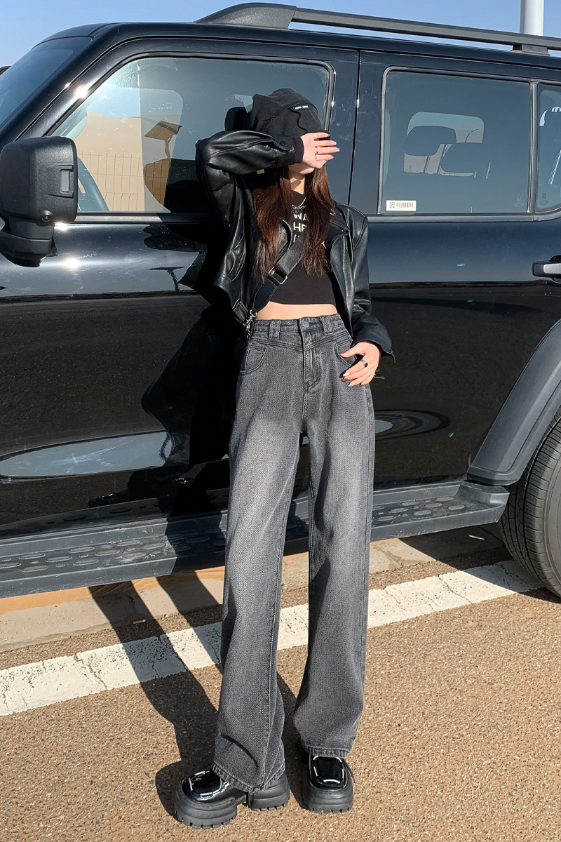 加绒星空纹 保暖复古星空纹阔腿牛仔裤高腰宽松显瘦直筒阔腿裤