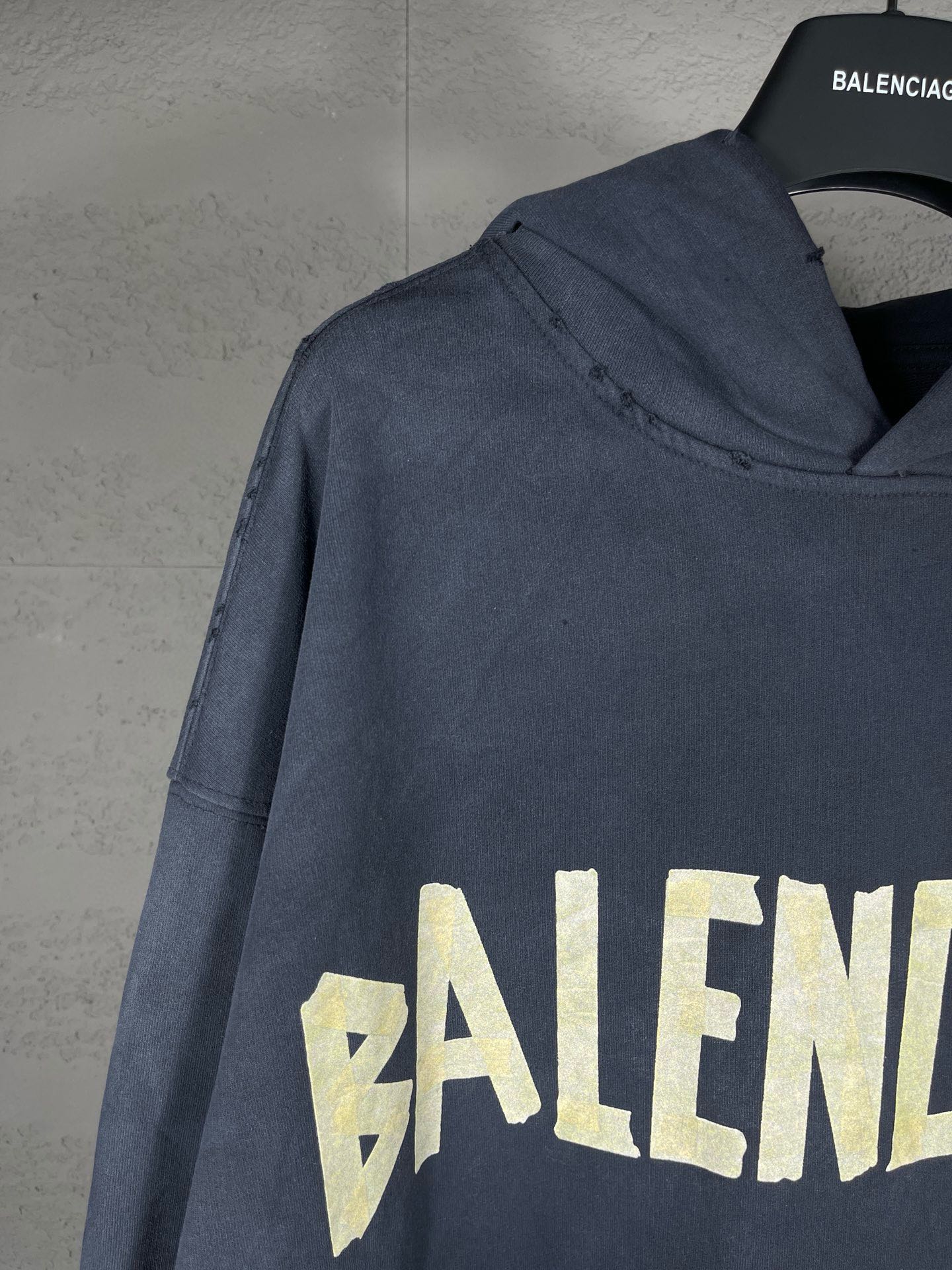 实拍图 顶级版本 官网品质 BALENCI GA 巴黎 23ss最新经典大爆款 第一时间购入原板 颜色 印花 水洗 制作跟回正品 巨别市场错版 欢迎对比 胶带直喷印花 成衣2次水洗磨烂做旧连帽卫衣 砖柜同步 面料采用巴黎ZP定织定染全棉大卫衣 克重450克 布面干净 布纹清晰 柔软舒适 螺纹釆用定染无色差 经典图案采用康丽进口直喷 字母清晰 效果立体 还原砖柜 成衣水洗作旧 多位手工磨烂 超重工艺生产 巨别市场通货 注意ZP面料是细纹细纱织 注意巨别 欢迎对比 的版型釆用OS宽松落肩版型 男女同款
