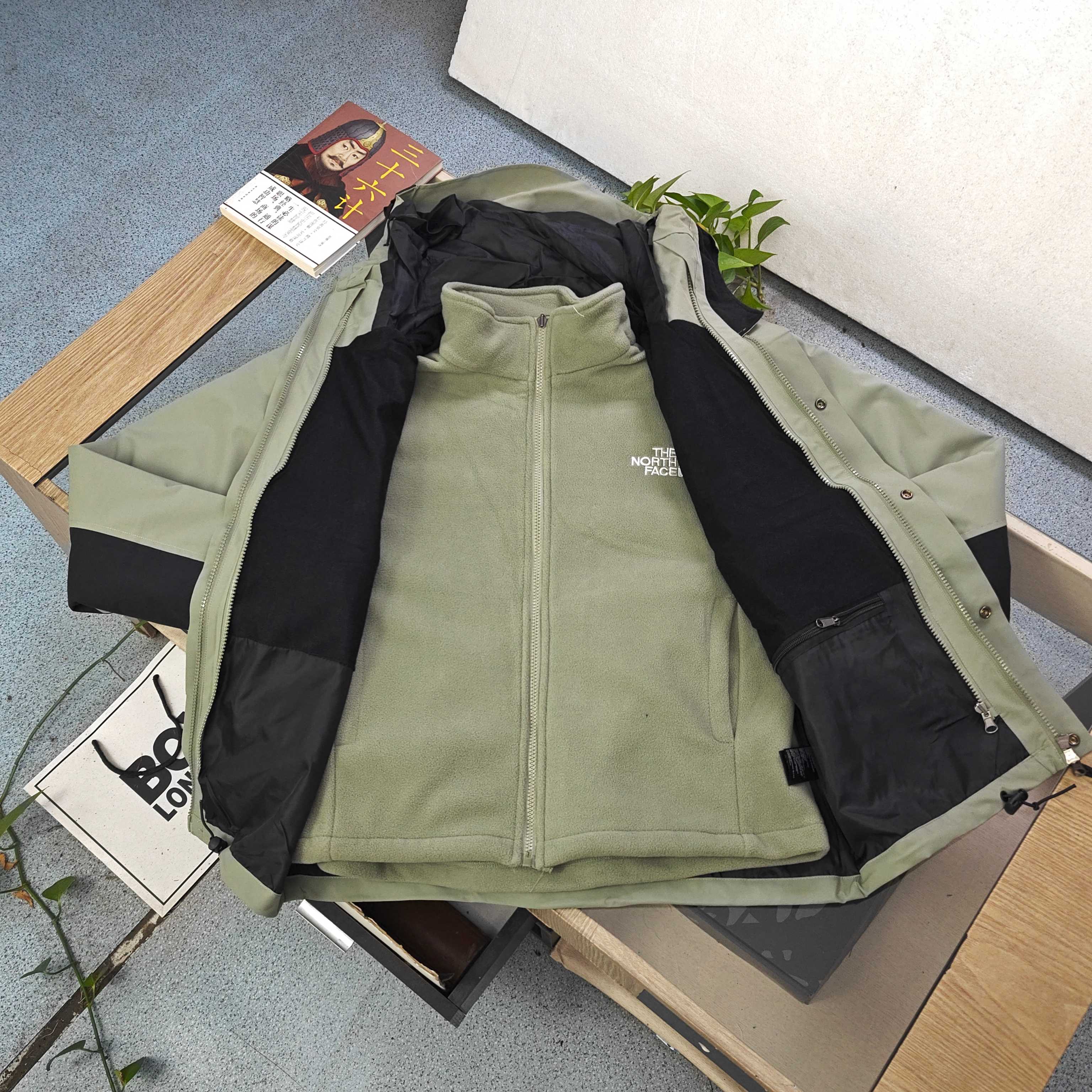 2025新款The North Face北面TNF经典刺绣logo拼接三合一冲锋衣外套 一款衣服三种穿法 机能潮搭两不误 The North Face这款冲锋衣 经典拼接打造高辨识度外观 品牌logo醒目吸睛 连帽设计搭配金属按扣 兼具户外机能与街头潮感 防风防水面料轻松应对多变天气