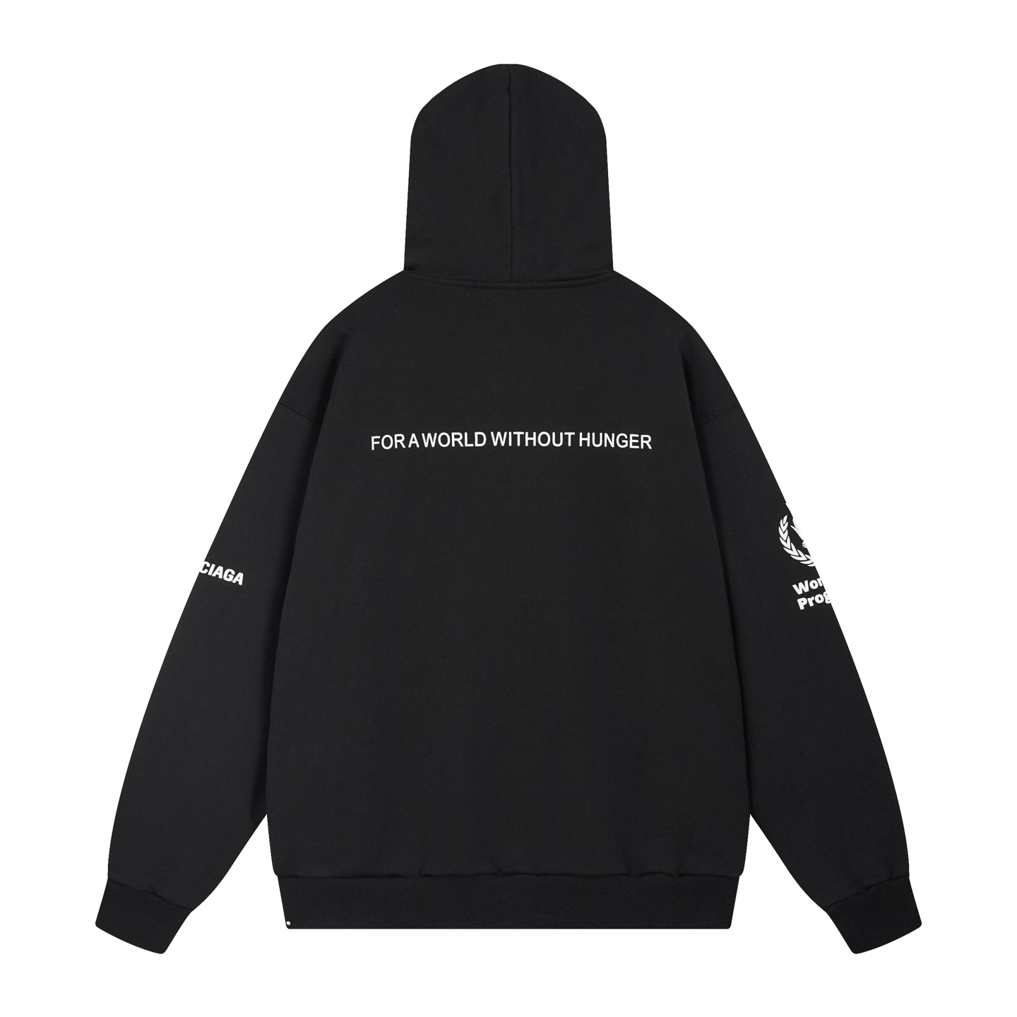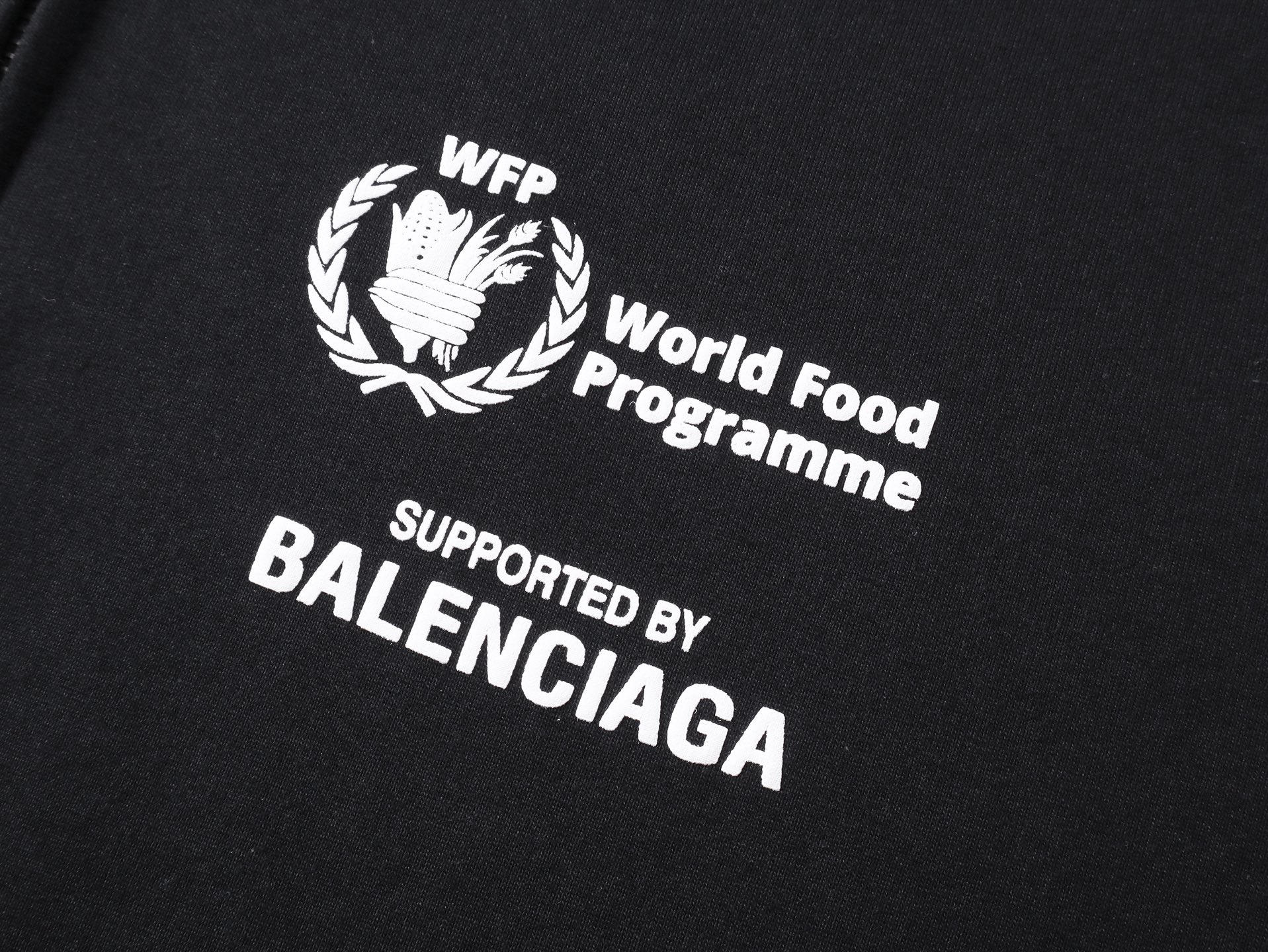 实拍图 顶级版本 官网品质 BALENCI GA 巴黎 2025新款 WFP 粮食署联名 前后片左右袖发泡立体印花连帽拉链开衫卫衣 砖柜同步 第一时间正品研制 欢印对比 面料采用巴黎ZP定织定染全棉大卫衣 克重460克 布面干净 布纹清晰 柔软舒适 螺纹釆用定染无色差 印花采用进口胶浆发泡印花 字母清晰 效果立体 版型釆用OS宽松落肩版型 男女同款