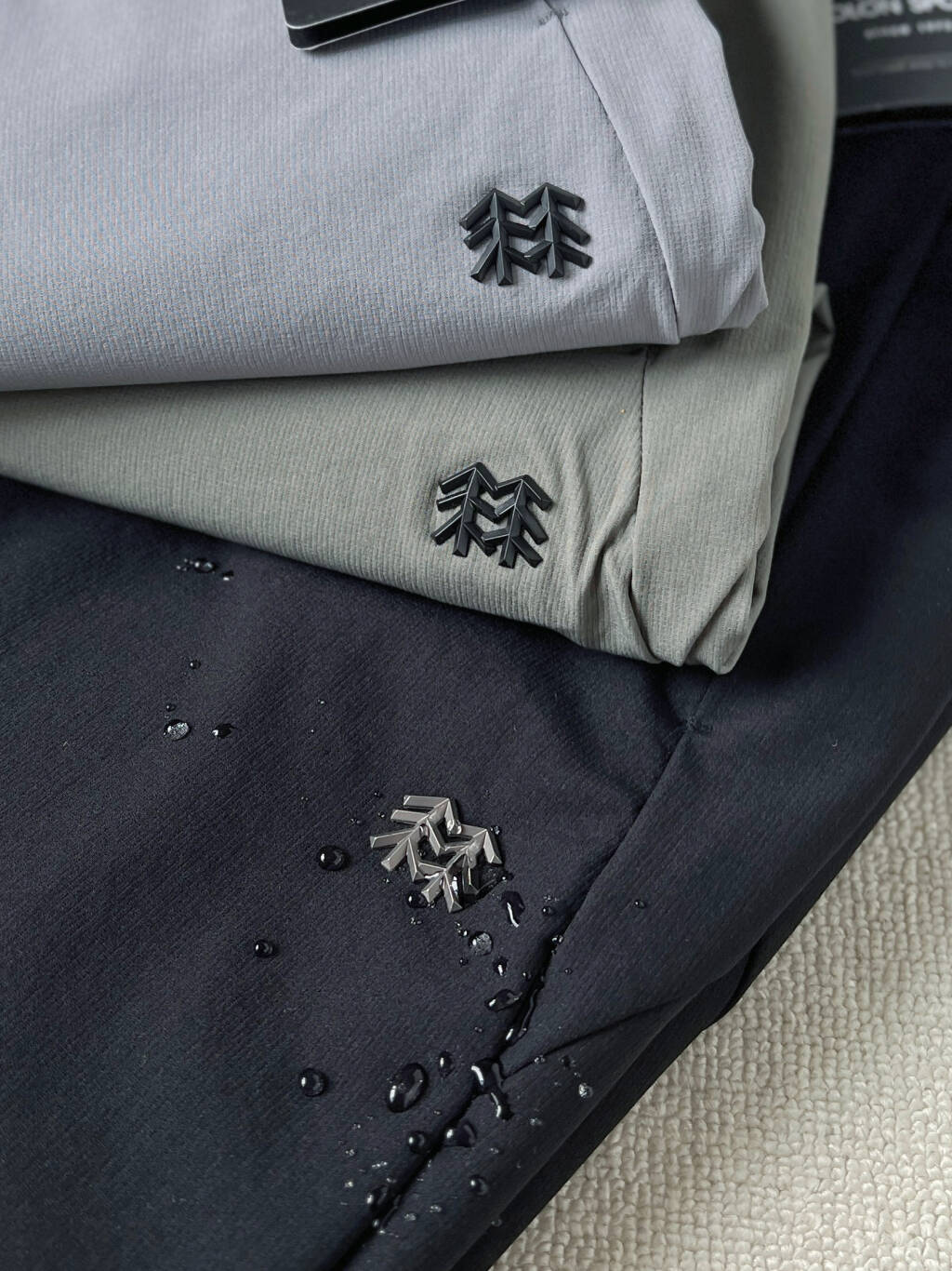 Schoeller ecorepel Bio DWR持久防泼水处理 增强裤子的耐候性和抗污性 防水剂完全使用可再生原料 不含PFC氟化物等对人体和环境有害的成分