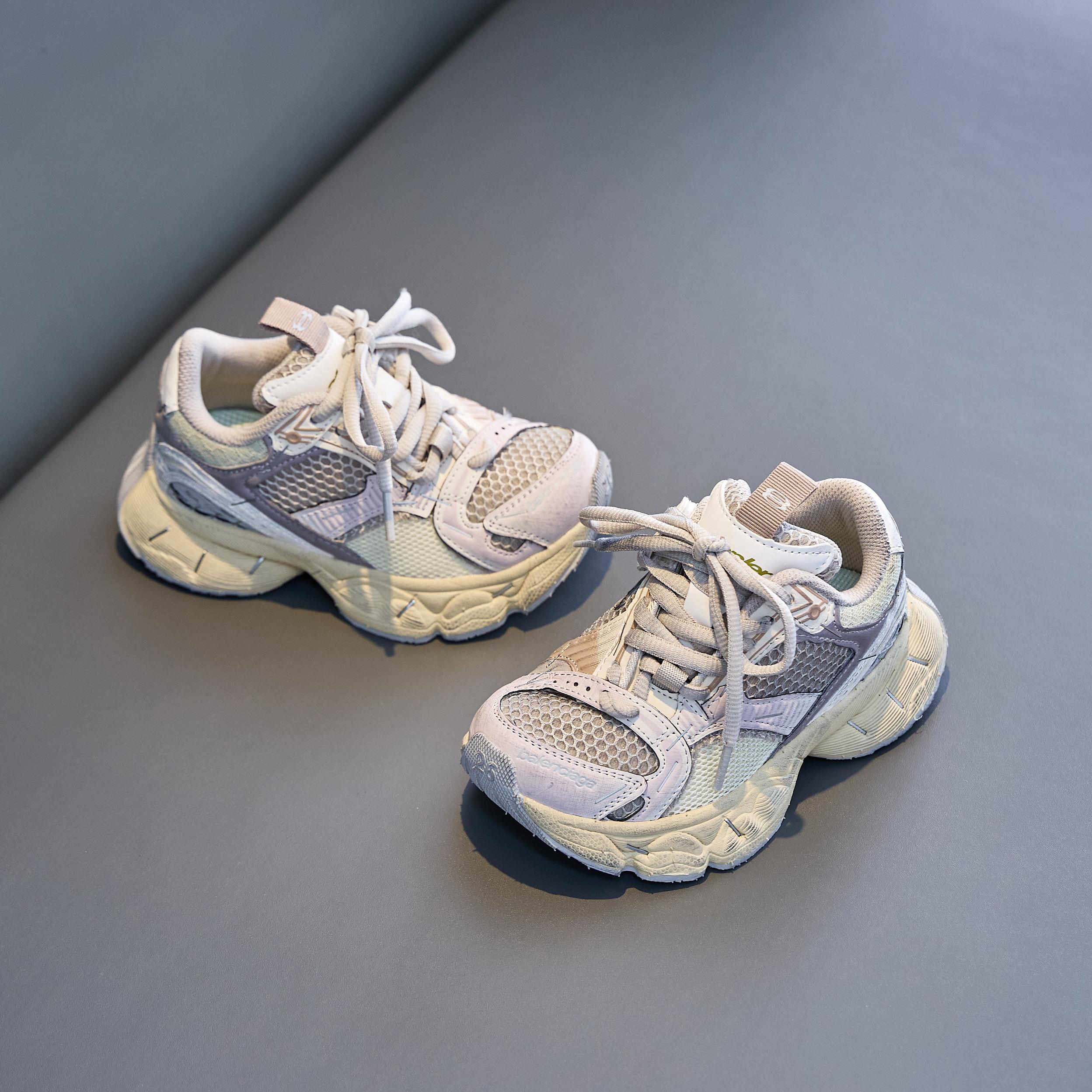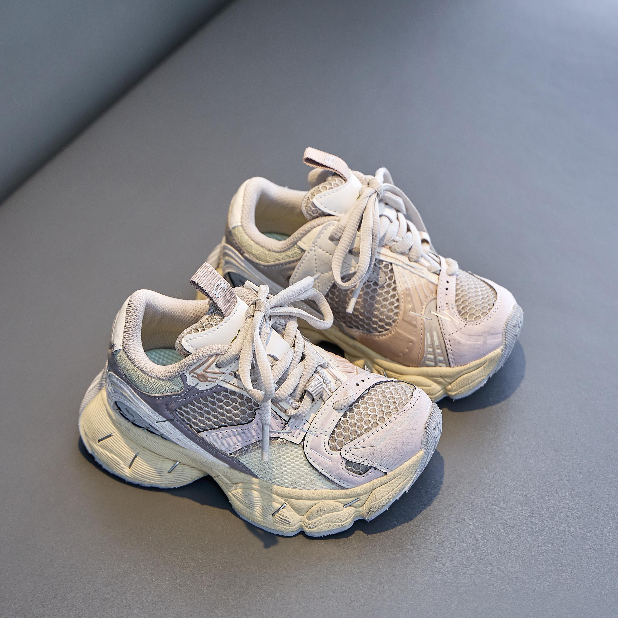 巴黎世家欧洲站走秀款厚底老爹鞋做旧脏脏鞋男女童百搭跑步鞋炸街童鞋