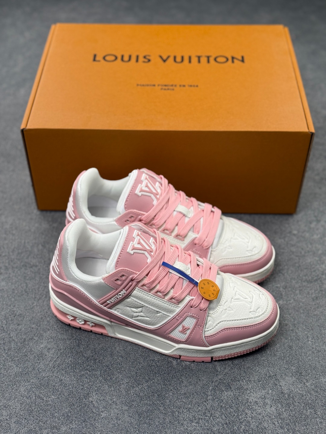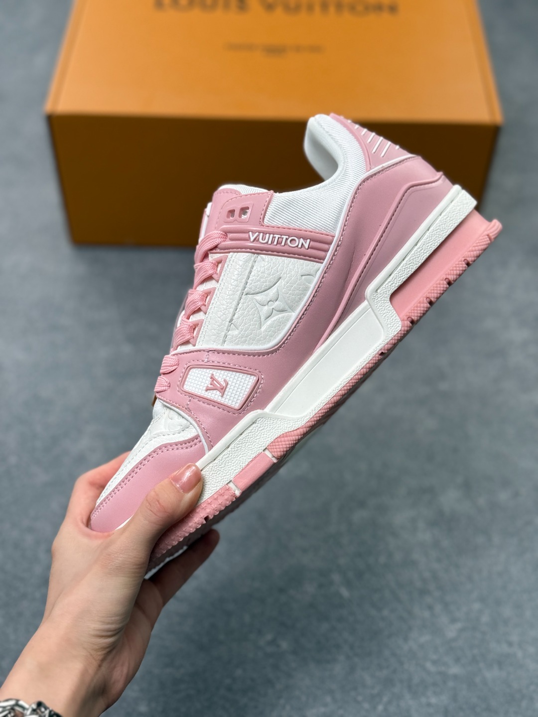 Louis Vuitton 路易威登 粉白 广东原产高性价比 采用皮革鞋面材质 内里小羊皮打造及去味海玻璃脚垫 空胶工艺 外置耐磨橡胶大底全新LV路易威登Louis Vuitton Remarque Low经典低帮系带休闲运动百搭板鞋