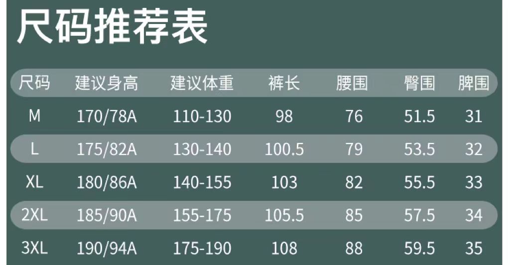 尺码 M 3XL