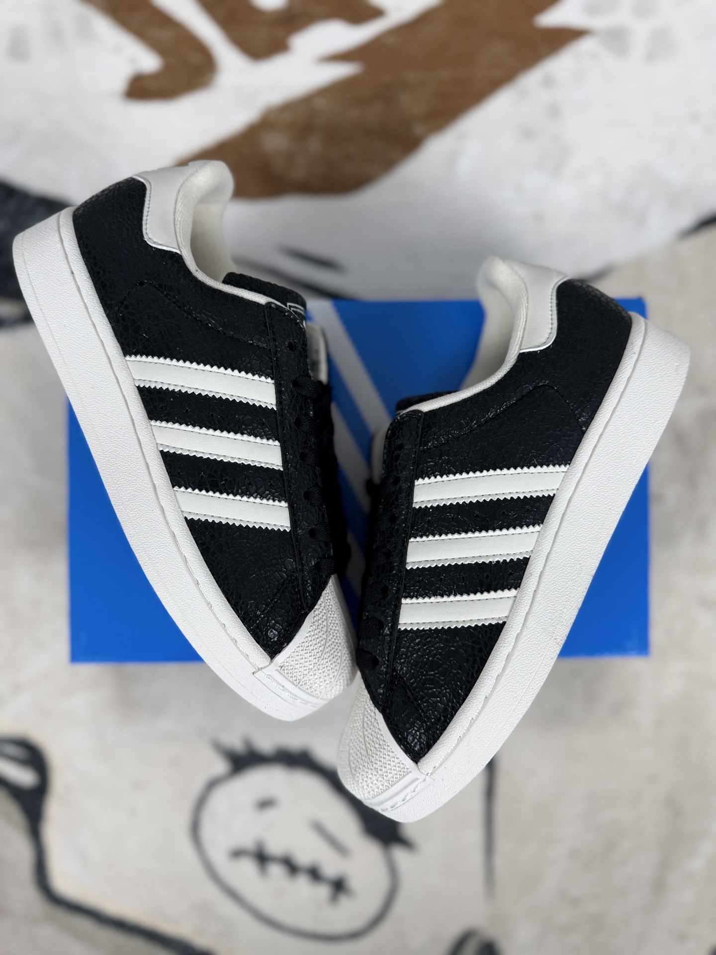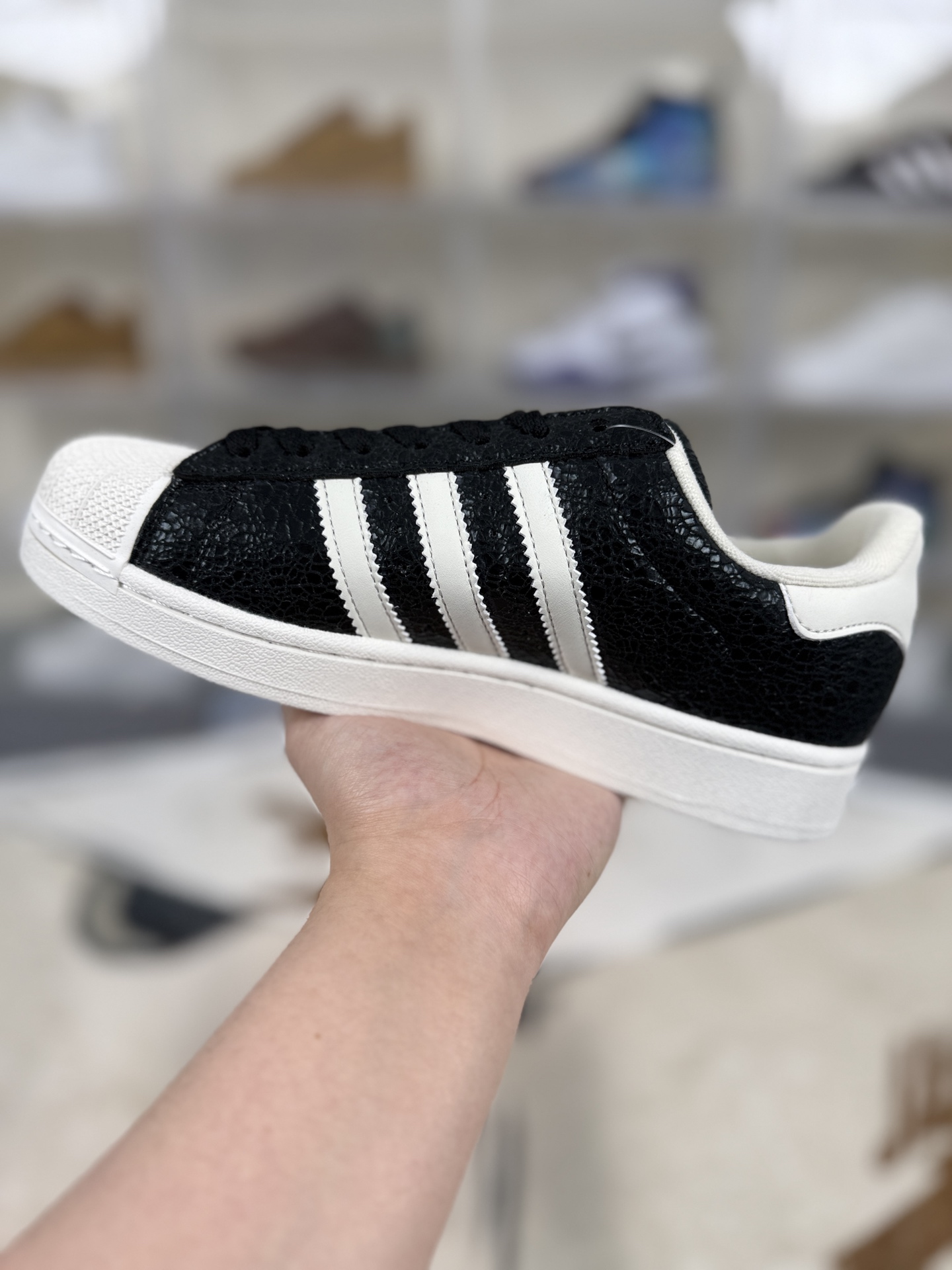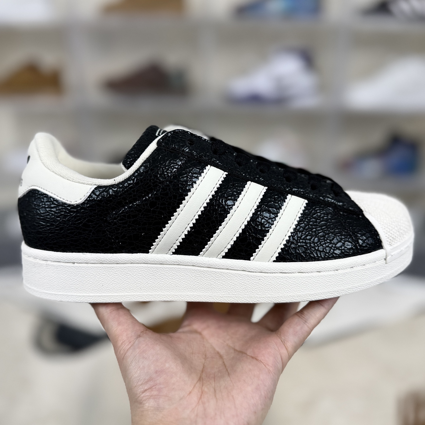 Superstar系列以贝壳头设计著称 这一标志性元素使其在众多鞋款中脱颖而出 贝壳头不仅具有防撞和保护脚尖的作用 还成为了时尚界的经典符号 作为阿迪达斯经典系列的一部分 Superstar鞋侧常常饰有三叶草标志 彰显品牌身份与品质保证 鞋面采用优质皮革 质感高级且耐磨耐穿 柔软橡胶底则提供了良好的缓震效果和抓地力 Superstar板鞋以其舒适的穿着体验而著称 柔软橡胶底和合理的内部空间设计 使得长时间穿着也不会感到疲劳 简约复古的鞋型搭配贝壳头设计 使得Superstar成为一款百搭鞋款 无论是搭配牛仔裤 休闲裤还是裙子 都能轻松驾驭各种风格 采用优质材质和精湛工艺打造 Superstar板鞋具有出色的耐用性和耐磨性 能够陪伴消费者度过漫长的时光 自诞生以来 Superstar逐渐成为街头潮流文化的代表之一 众多潮人 明星和设计师都钟爱这款鞋款 纷纷将其纳入自己的穿搭中