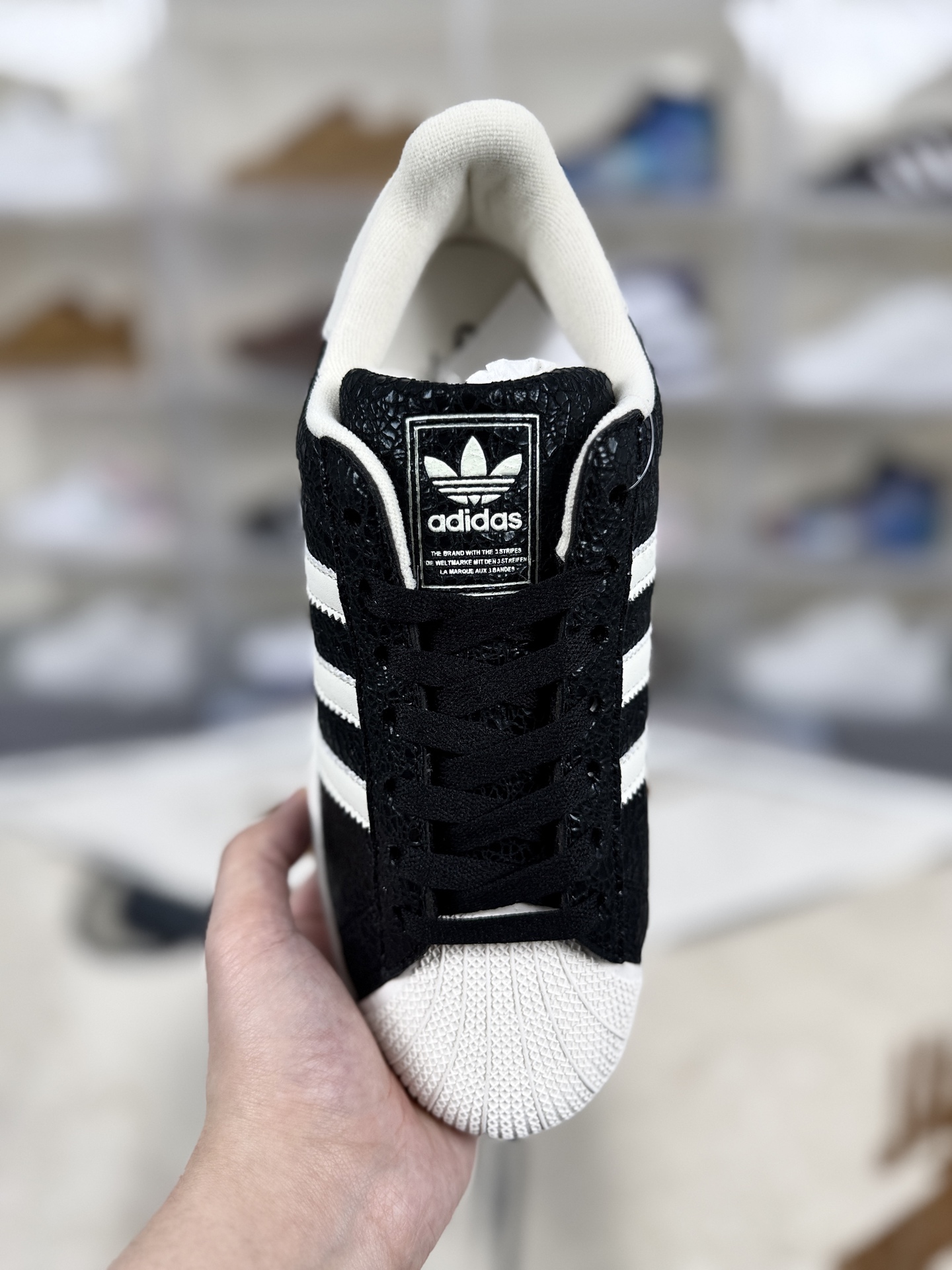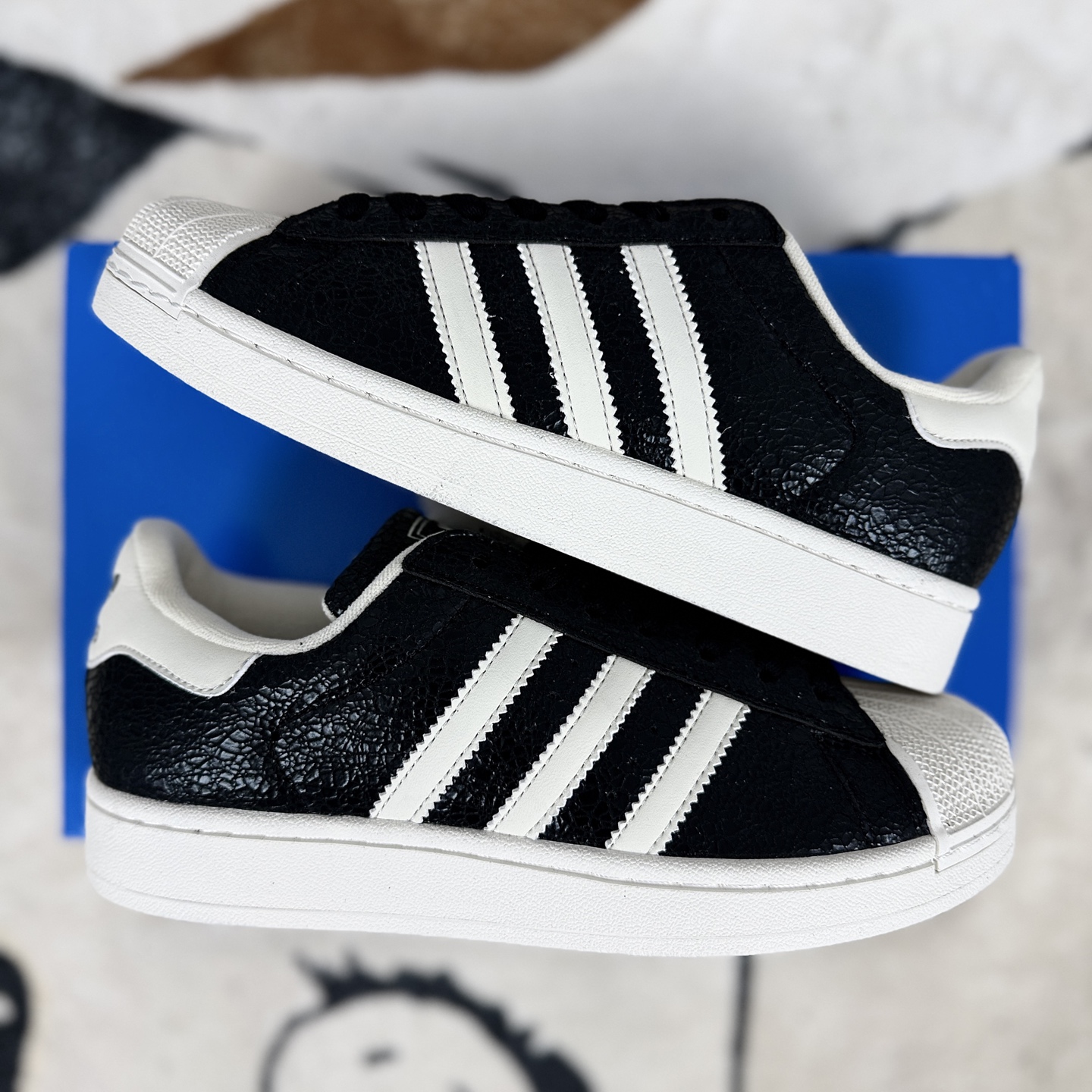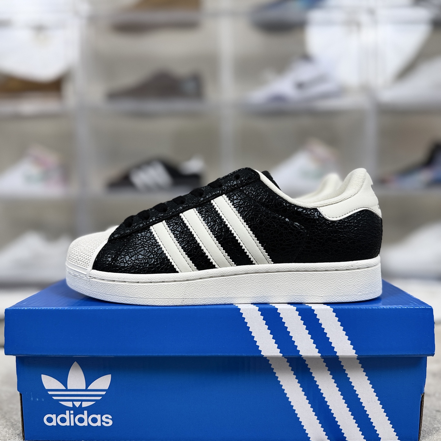 Superstar系列以贝壳头设计著称 这一标志性元素使其在众多鞋款中脱颖而出 贝壳头不仅具有防撞和保护脚尖的作用 还成为了时尚界的经典符号 作为阿迪达斯经典系列的一部分 Superstar鞋侧常常饰有三叶草标志 彰显品牌身份与品质保证 鞋面采用优质皮革 质感高级且耐磨耐穿 柔软橡胶底则提供了良好的缓震效果和抓地力 Superstar板鞋以其舒适的穿着体验而著称 柔软橡胶底和合理的内部空间设计 使得长时间穿着也不会感到疲劳 简约复古的鞋型搭配贝壳头设计 使得Superstar成为一款百搭鞋款 无论是搭配牛仔裤 休闲裤还是裙子 都能轻松驾驭各种风格 采用优质材质和精湛工艺打造 Superstar板鞋具有出色的耐用性和耐磨性 能够陪伴消费者度过漫长的时光 自诞生以来 Superstar逐渐成为街头潮流文化的代表之一 众多潮人 明星和设计师都钟爱这款鞋款 纷纷将其纳入自己的穿搭中
