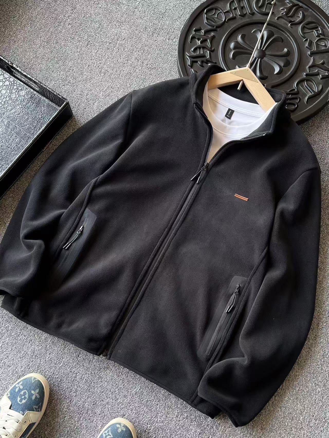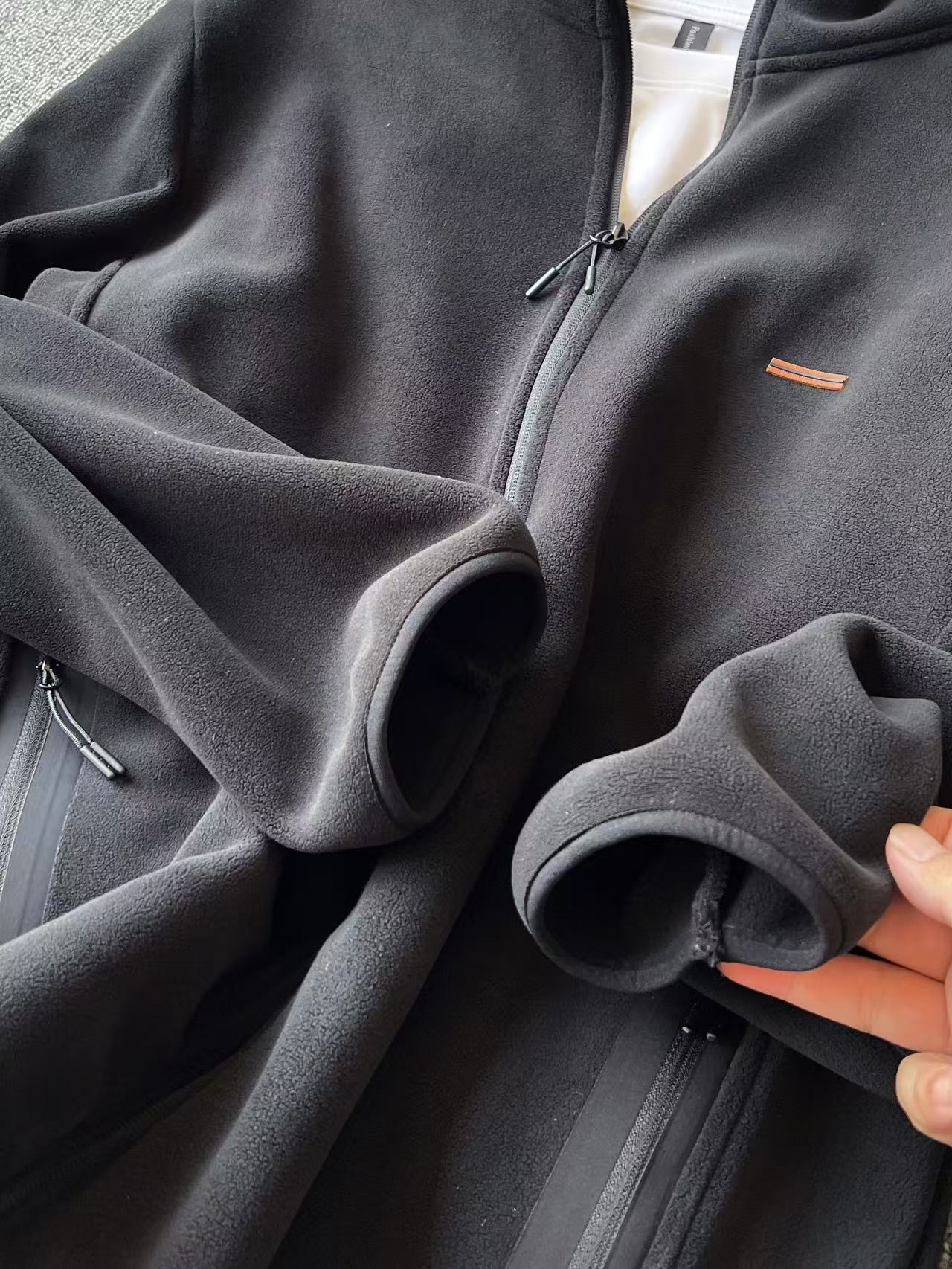 细节细节再细节 Zegna家商场新品立领加厚拉链款夹克外套 胸前标志性杰尼亚棕黑棕组合浮雕立体硅胶线条 摸起来带有层次感 十分精致 双袖以及下摆全部做了包边设计 不仅做到防风效果 更显精致感