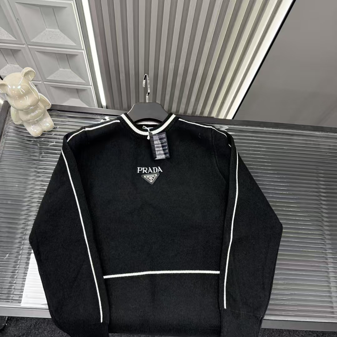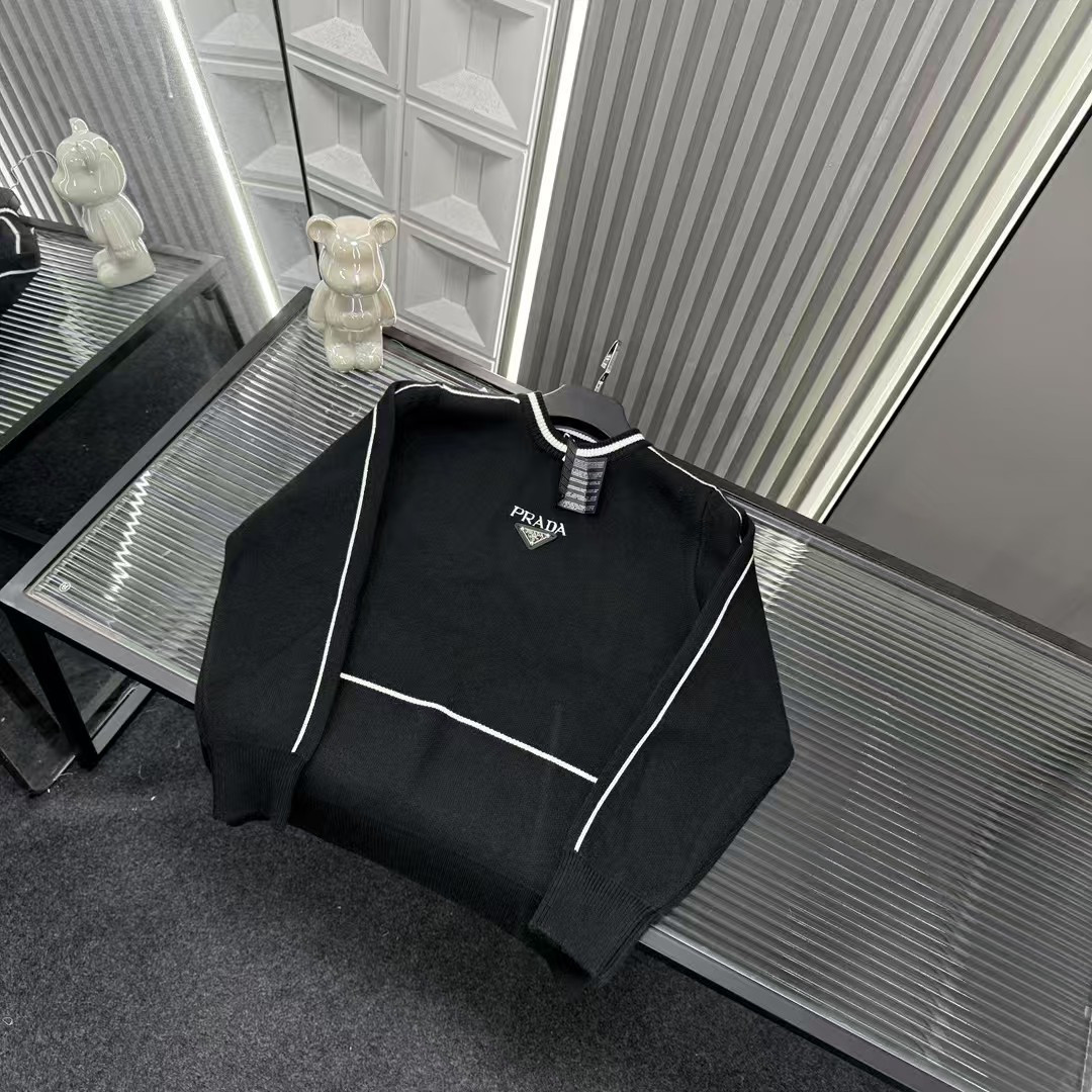 秋冬爆款热销款推荐Prada普拉达针织毛衣 撞色线条 胸前字母Logo金属三角钢印 三标齐全官网一致 放大看细节原相机实物拍摄 颜色 黑色 尺码 L 4xl L 80 105斤 XL 105 120斤 2XL 120 140斤 3XL 140 160斤 4XL 160 180斤