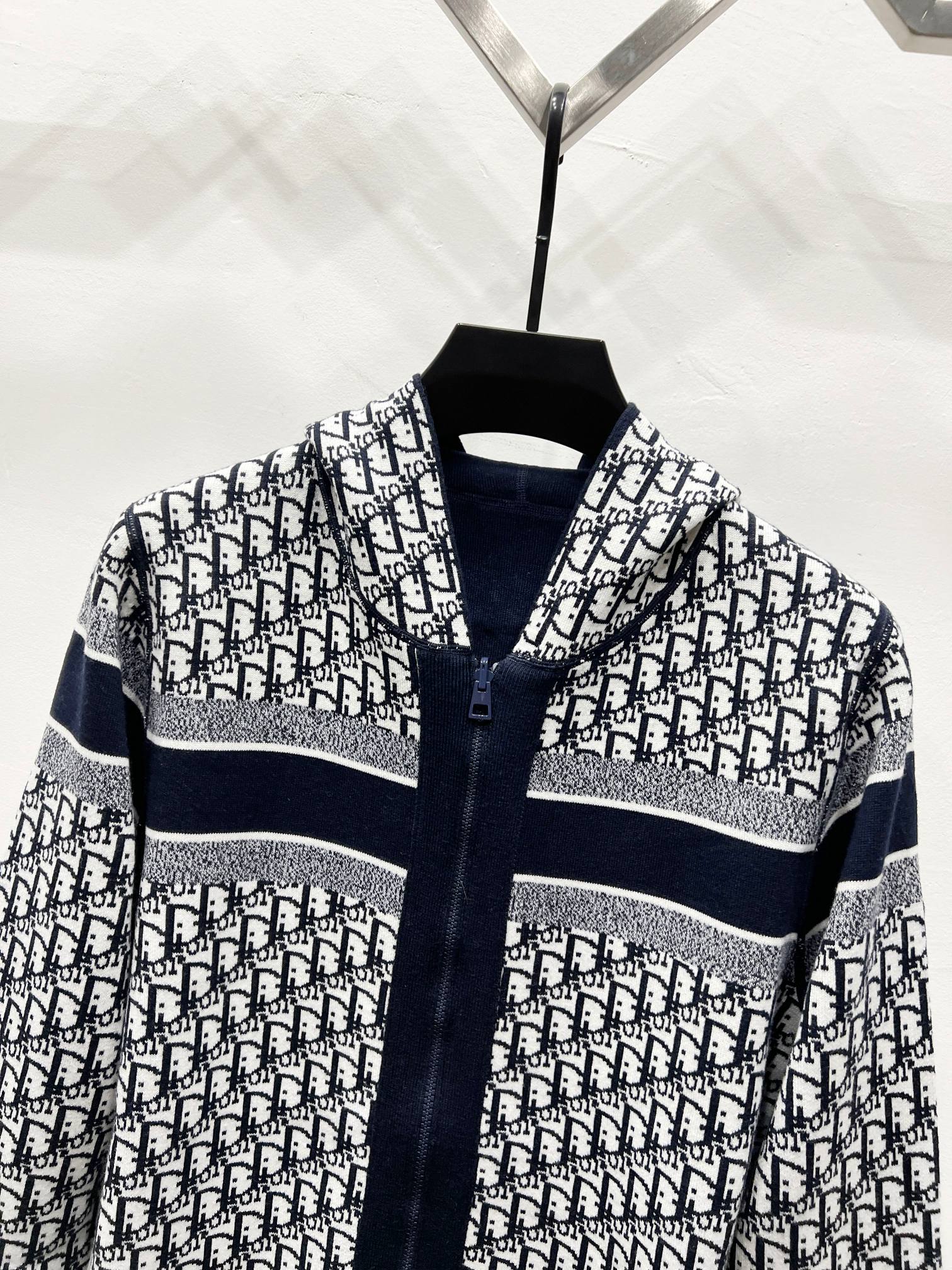 迪奥𝘾𝙝𝙧𝙞𝙨𝙩𝙞𝙖𝙣 𝘿𝙞𝙤𝙧 CD 24SS 老花满印双面提花拉链开衫外套毛衣