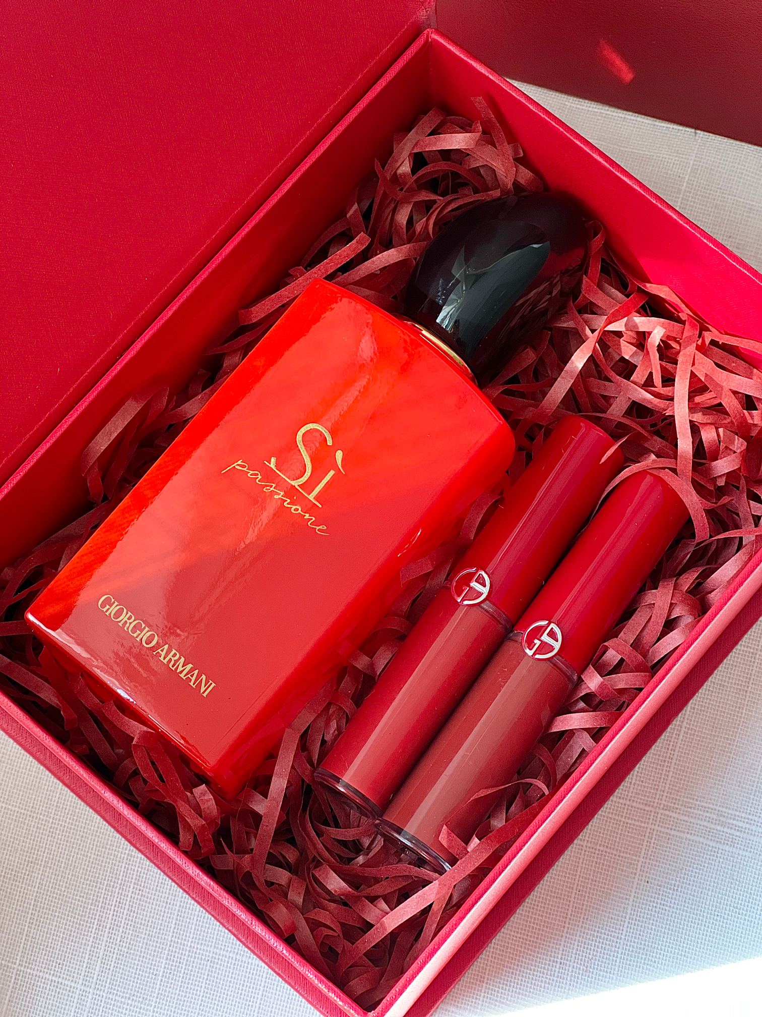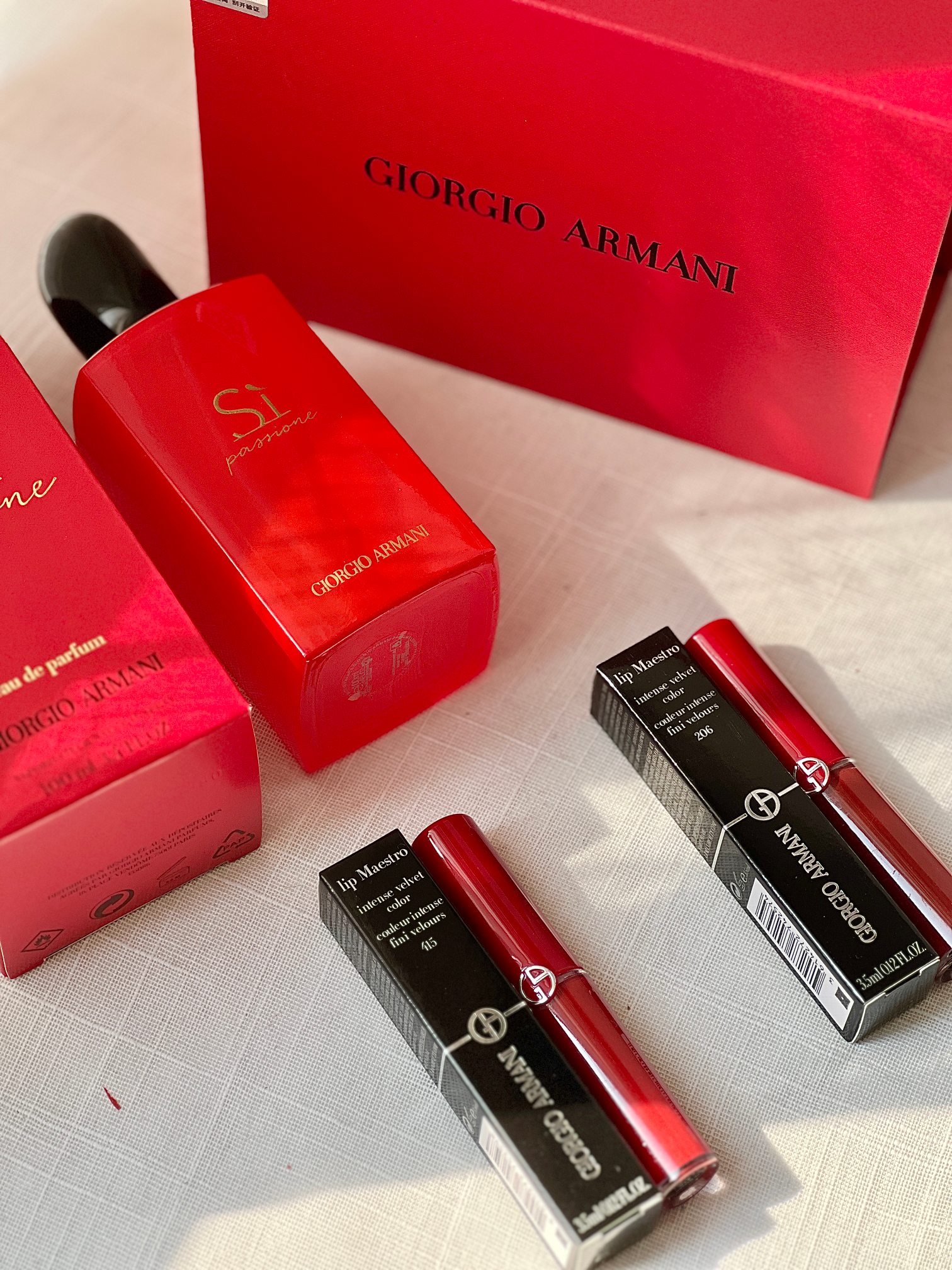 配打包箱 铁了心都要入 一生只做一件事 一生只爱一个人 我爱你 你随意 阿玛尼挚爱唇釉三件套礼盒 掌柜重磅推荐给大家 买到即是赚到 正儿八经的渠D货源 每盒都带海南离岛免税商品追溯码 并附赠海南免税城包装袋 商品防伪贴刮开涂层扫码查询输入串码即可显示正规产品