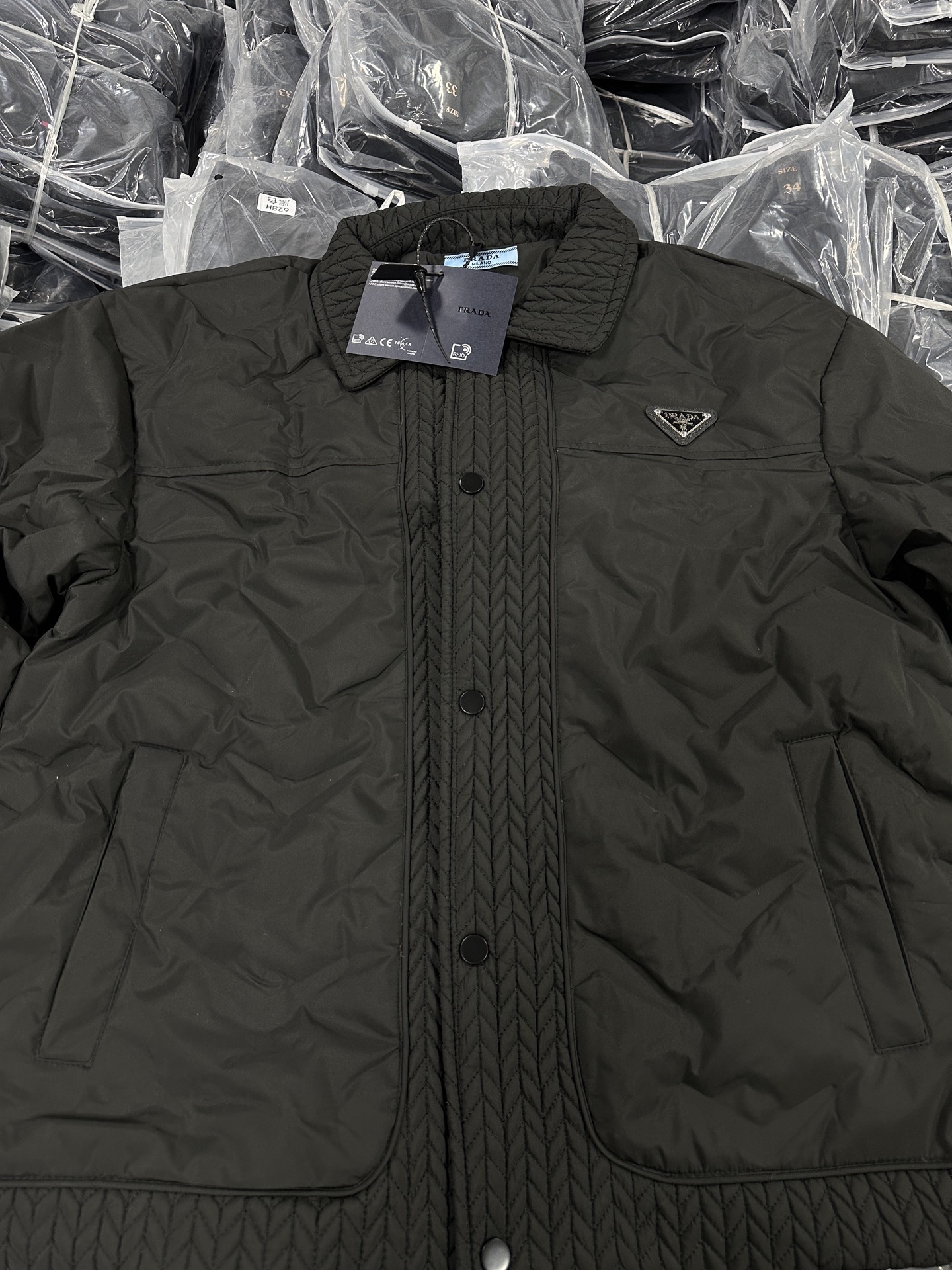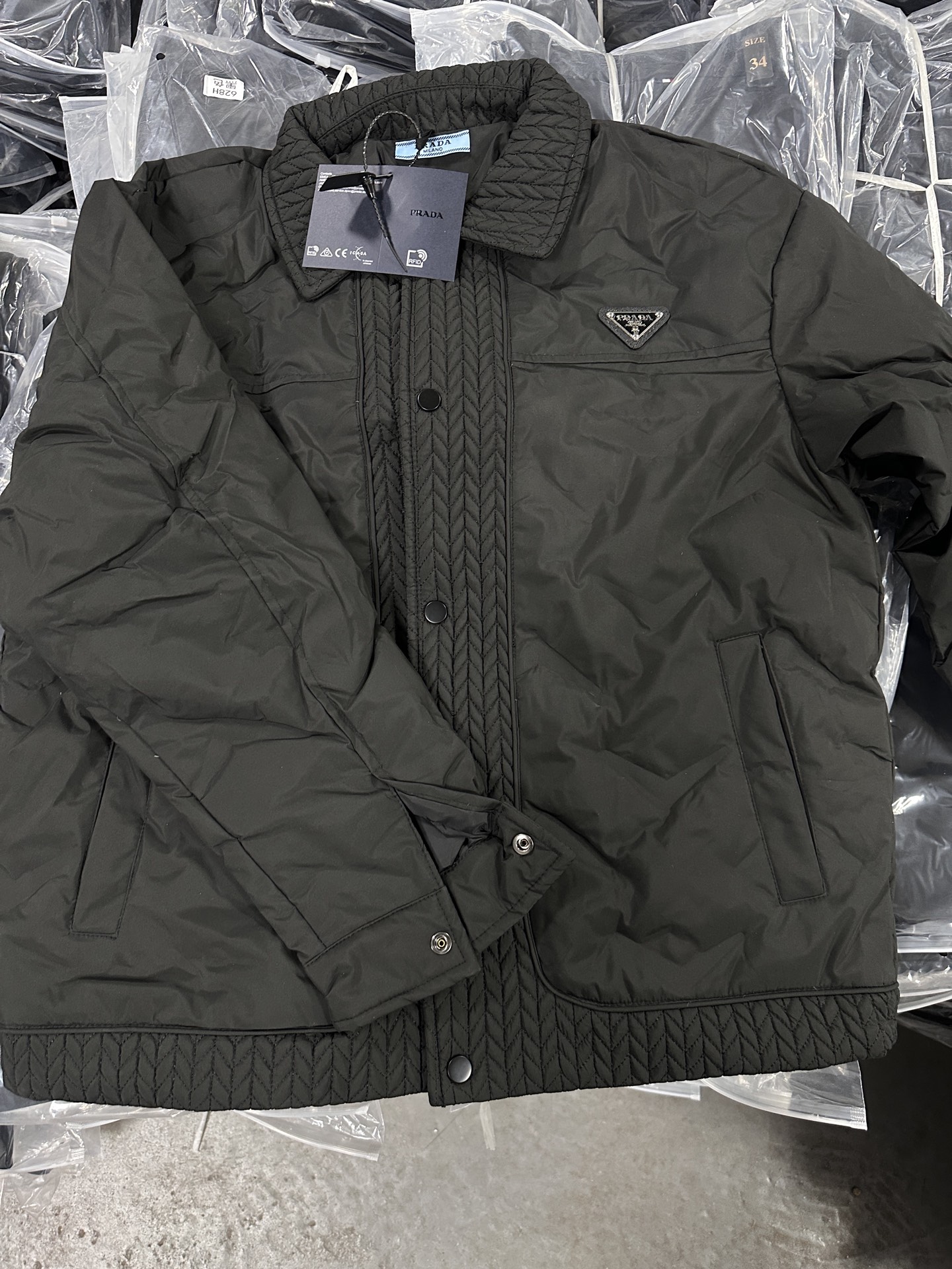 普拉达冬季新款 翻领麦穗羽绒服夹克 顶级品质 下单备注身高体 433011