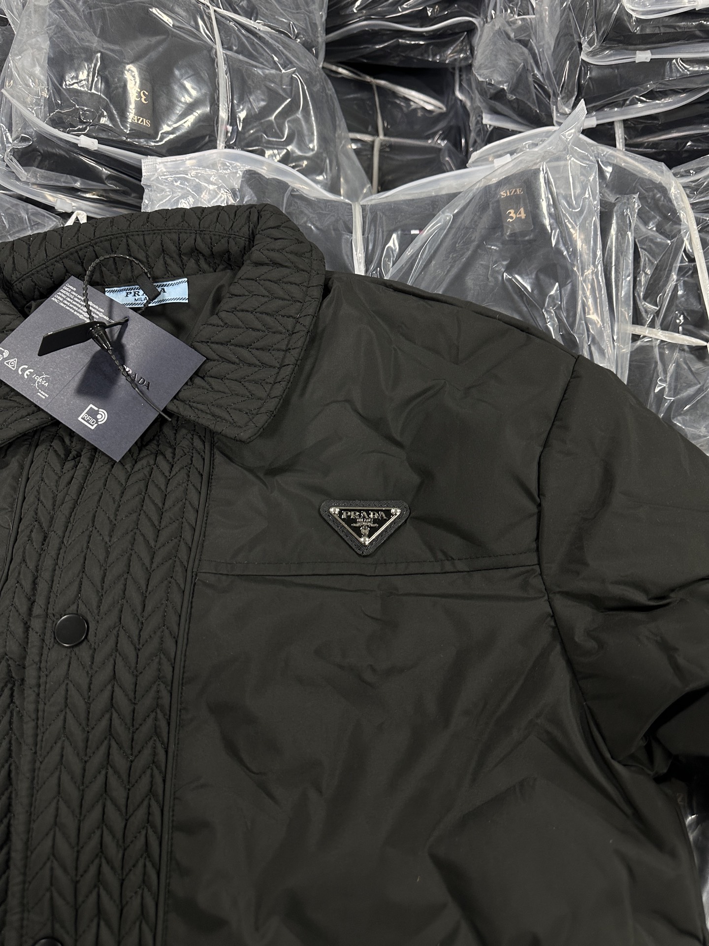 普拉达冬季新款 翻领麦穗羽绒服夹克 顶级品质