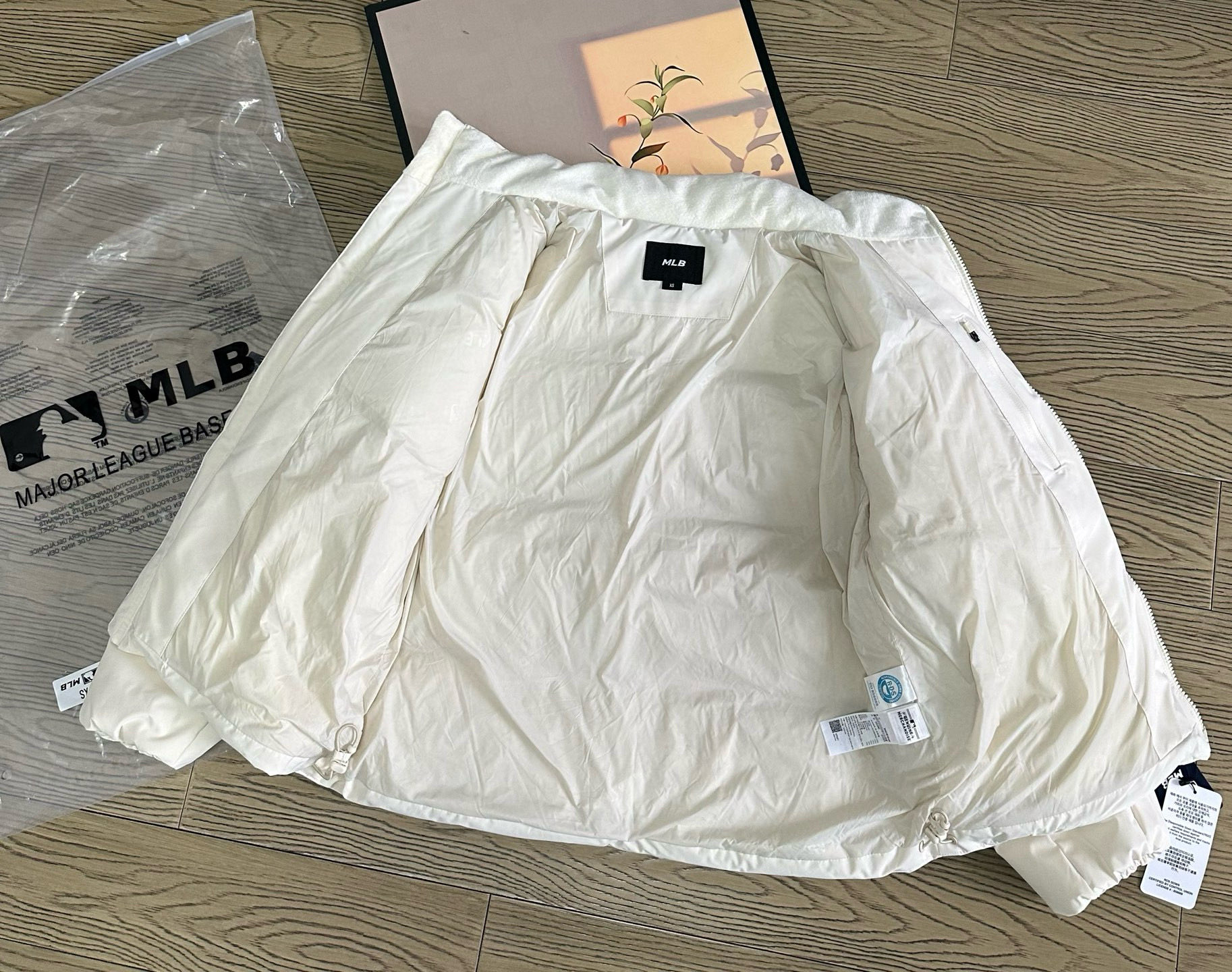 MLB 纽约洋基队纯色运动休闲保暖防风刺绣小logo宽松拉链长袖立领羽绒服 男女同款