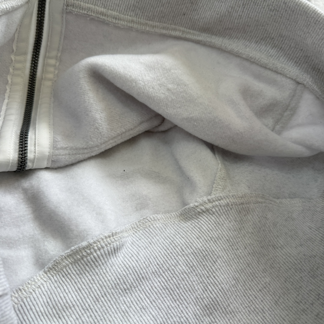 棉混纺拉绒面料柔软亲肤 轻盈保暖 舒适透湿拉链盖片 减少摩擦前侧口袋 拉链头带弹力绳圈 可做备用发圈使用 拇指洞设计超宽松剪裁 长度及腰