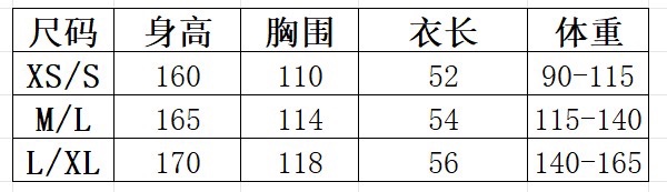 尺码 XS S M L L XL