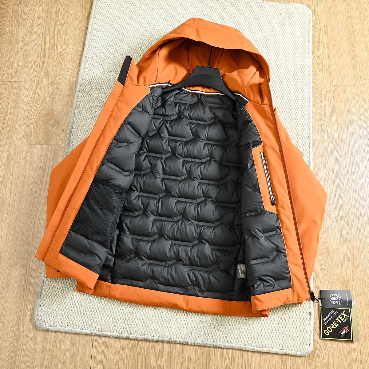 中量防水羽绒服 为中量级冬日户外运动提供轻薄防护 大身采用GORE TEX 3L70D面料 具有防水 防风 透湿及耐磨功能 高密梭织工艺打造质地紧密结构结实防风防水耐磨抗寒 内里填充800FP鸭绒 绒子含量90 轻盈保暖 轻量化科技打造 手感轻便 上身轻盈无负重感