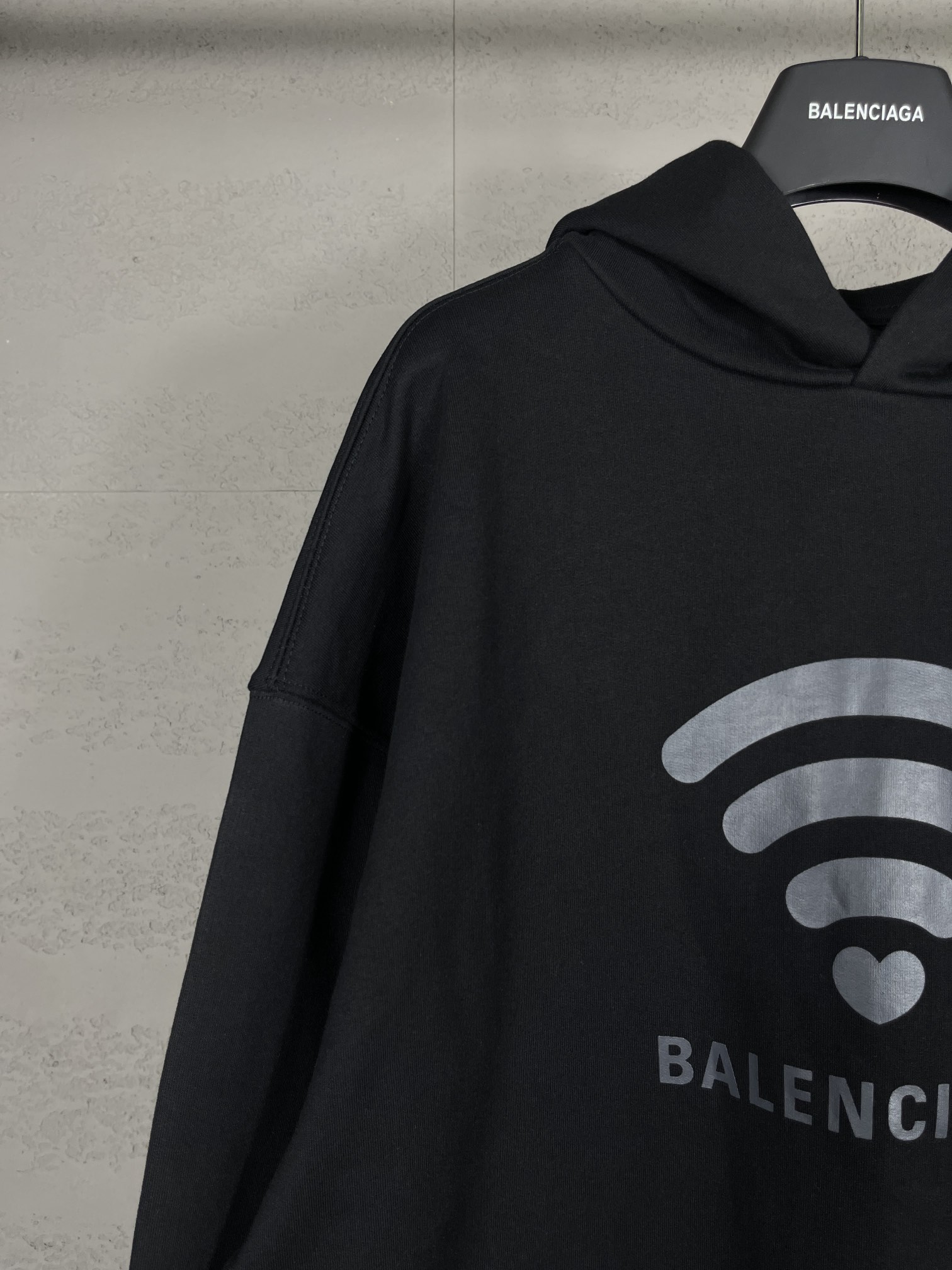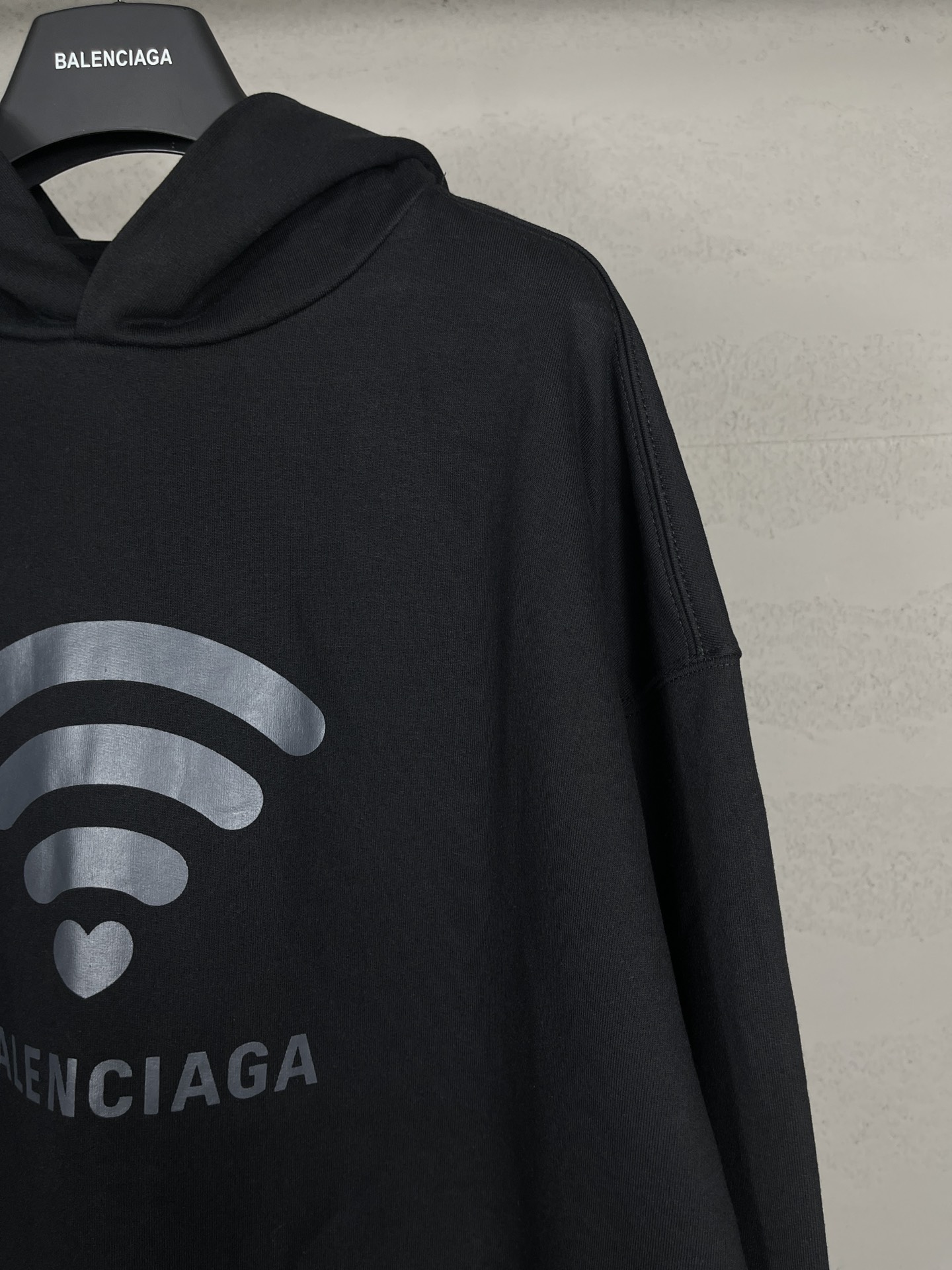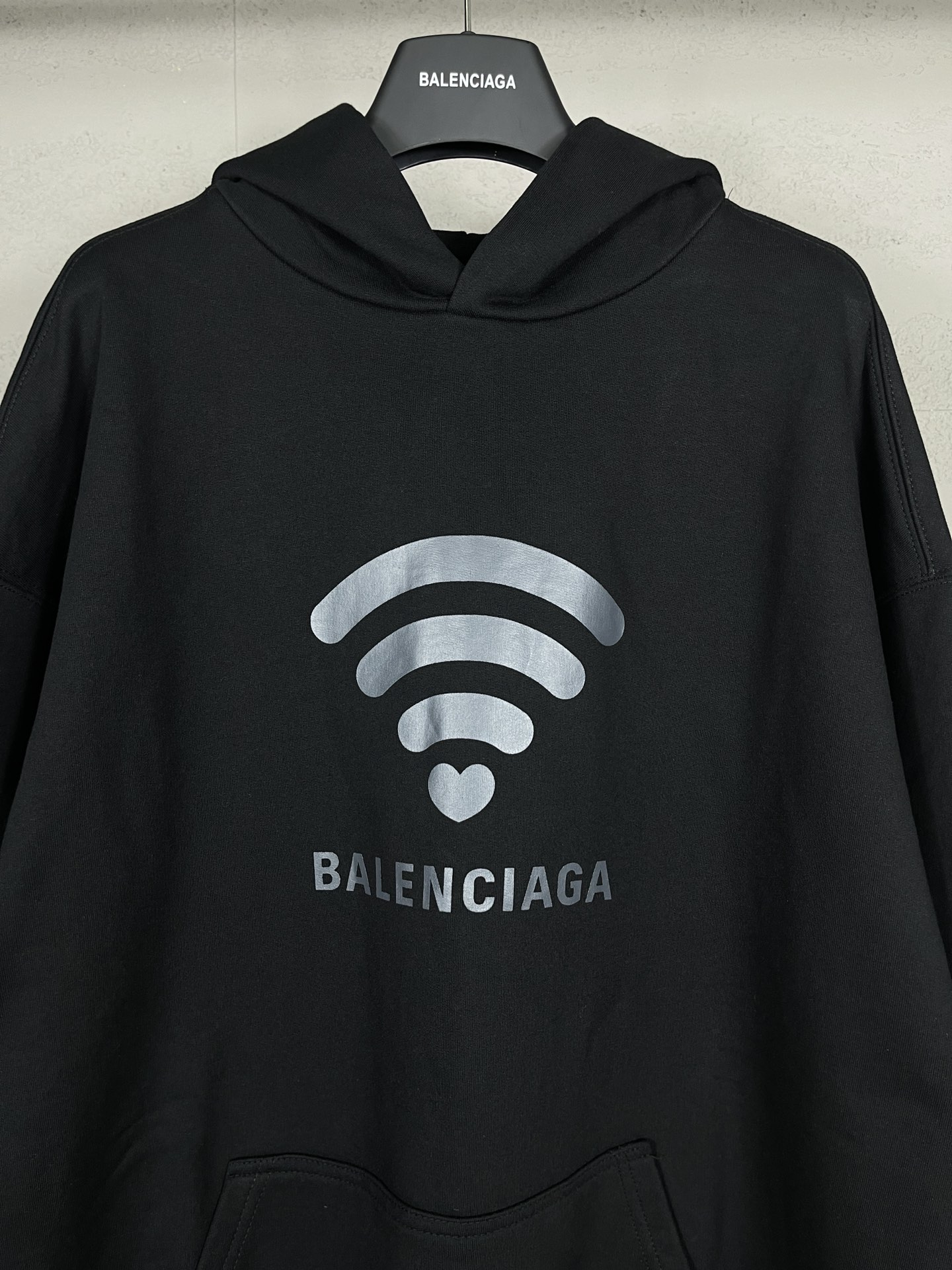 实拍图 顶级版本 官网品质 BALENCI GA 巴黎 2024限定款 520限定WI FI 走秀款印花连帽卫衣 砖柜同步 第一时间正品研制 欢印对比 面料采用巴黎ZP定织定染全棉大卫衣 克重460克 布面干净 布纹清晰 柔软舒适 螺纹釆用定染无色差 印花采用环保进口材料 字母清晰 效果立体 版型釆用OS宽松落肩版型 男女同款
