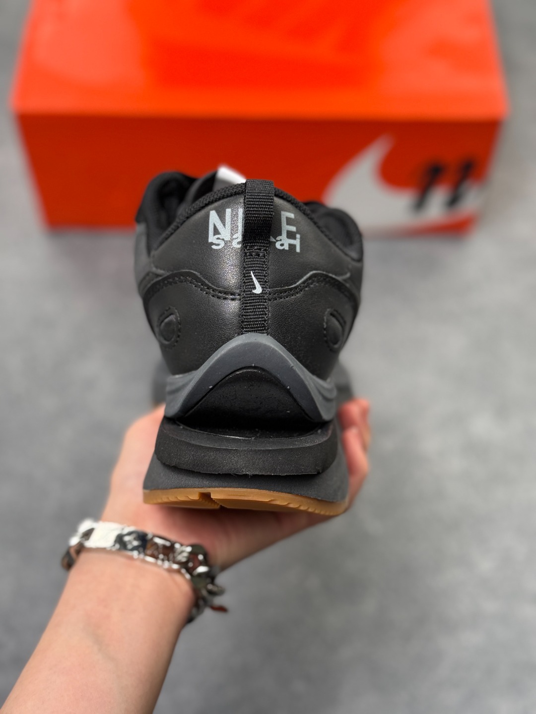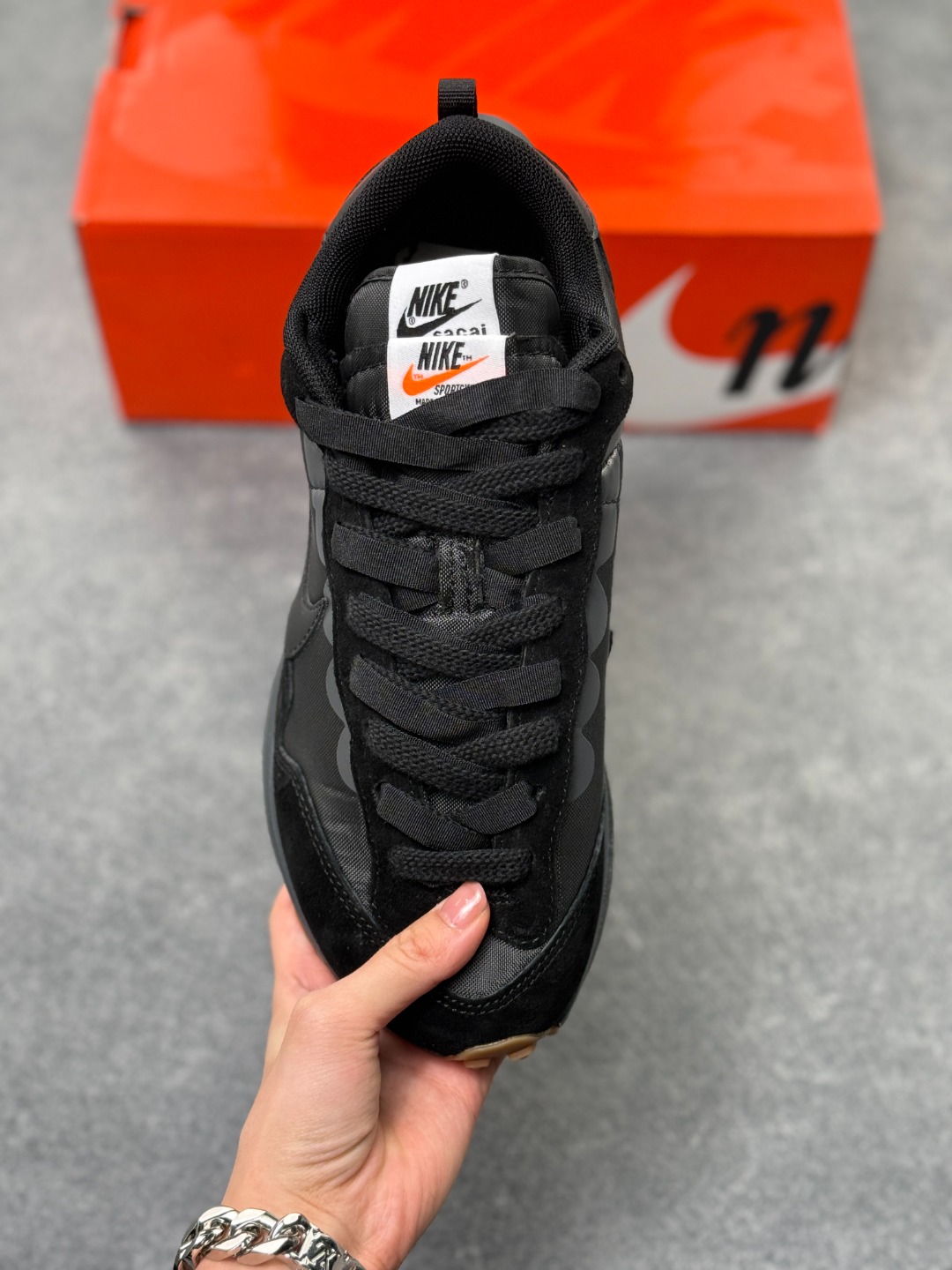 解构手法 重叠Swoosh 双重鞋舌 鞋带以及后跟SACAI字体都悉数保留