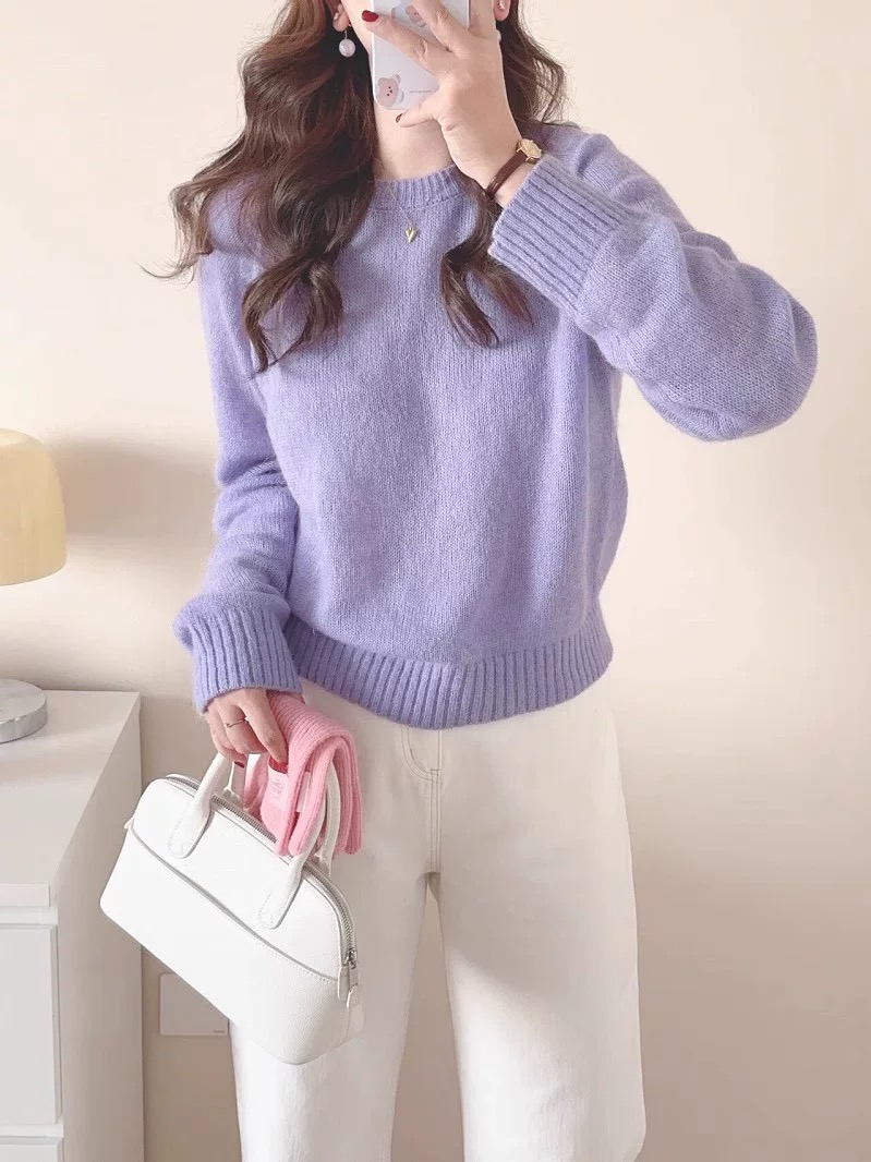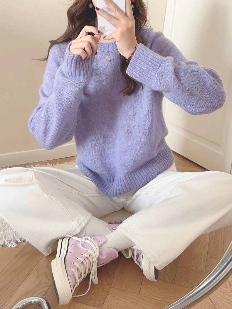 梦幻星黛露紫 冬季新款软糯干净显白绵羊毛针织毛衣