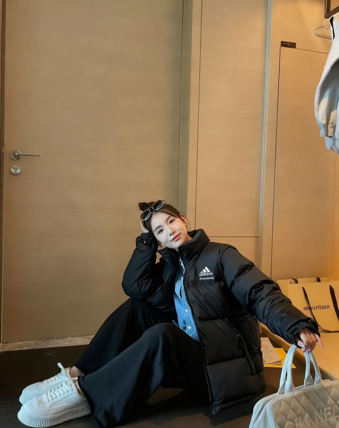 阿迪达斯Adidas黑色经典立领情侣面包服