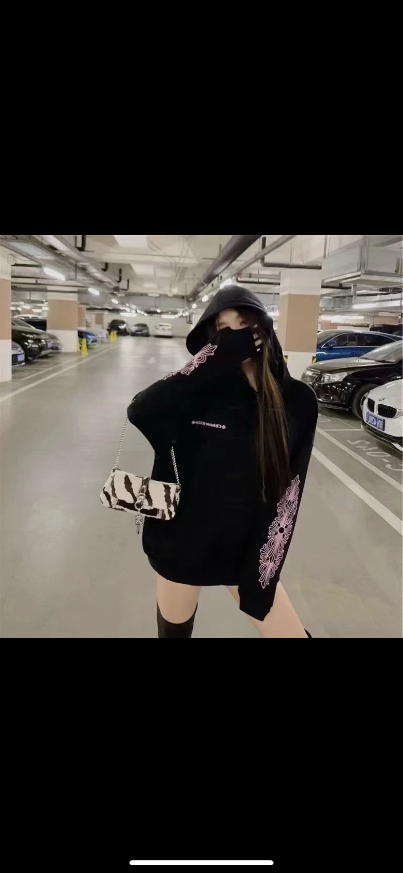 克罗心连帽卫衣拉链外套男女同款 釆用420克毛圈纯棉面料 定制五金拉链 黑白S XL