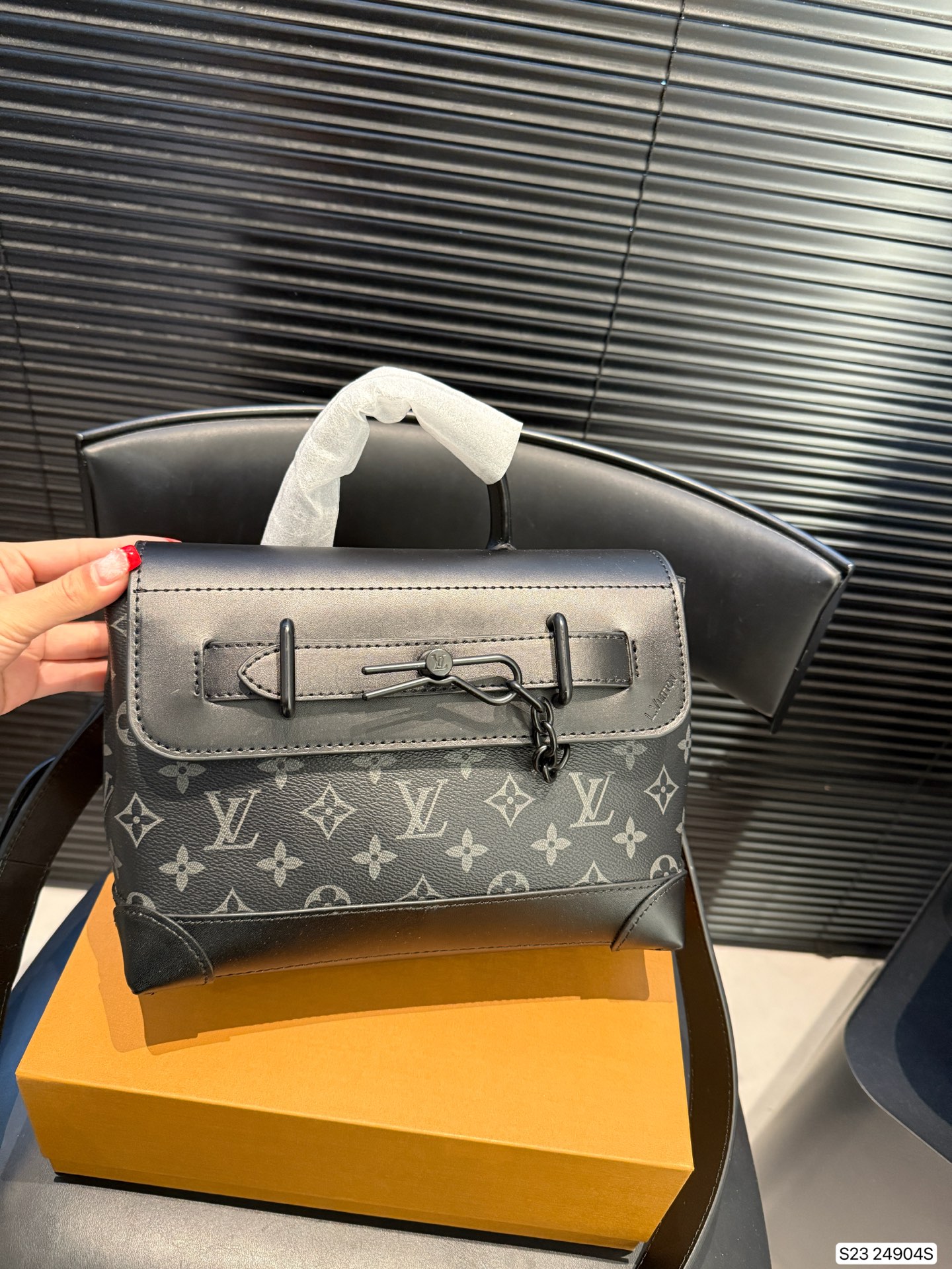 配盒子 LV新推出的男士邮差包火爆得一包难求 更是带起了一股多款式包包的潮流风 男包款整体的设计比较有型 男生或者酷酷的女生都可以背的喔 尺寸 24 18 货号24904s