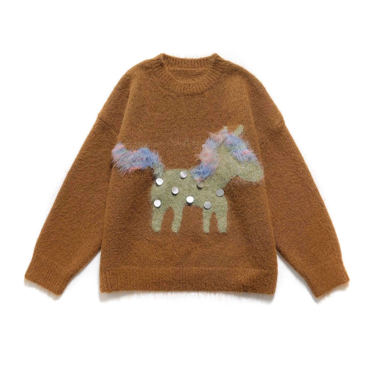 软乎乎的小马精灵 毛绒刺绣毛衣