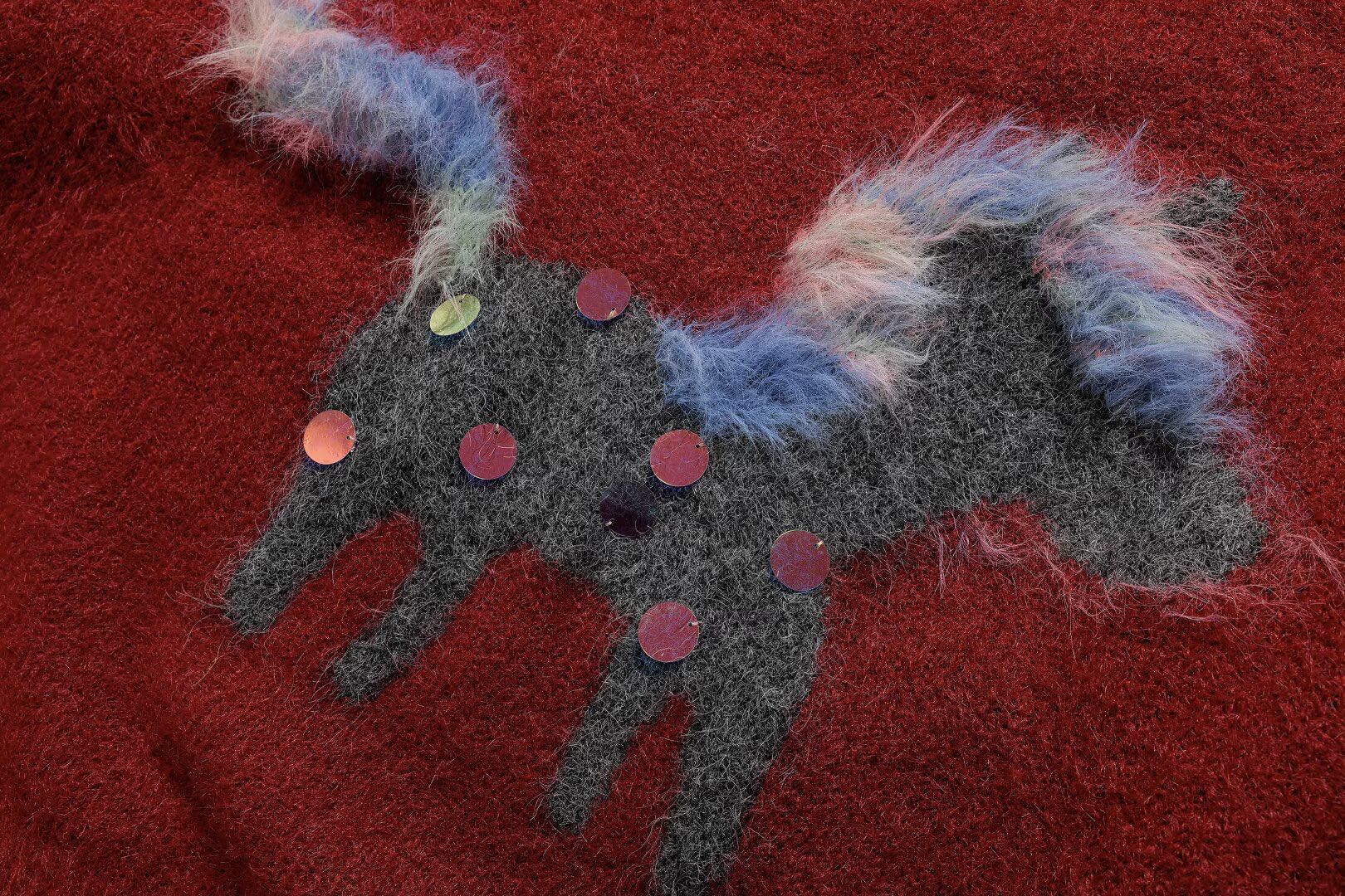 精选仿水貂毛针织面料 软乎乎的触感像被云朵包裹 亲肤又保暖 贴身穿也毫无扎肤感 后背的立体毛绒小马刺绣是点睛之笔 鬃毛和尾巴的渐变毛绒设计灵动又可爱 搭配闪片装饰 在光线下还能透出细碎光泽 小众设计感拉满