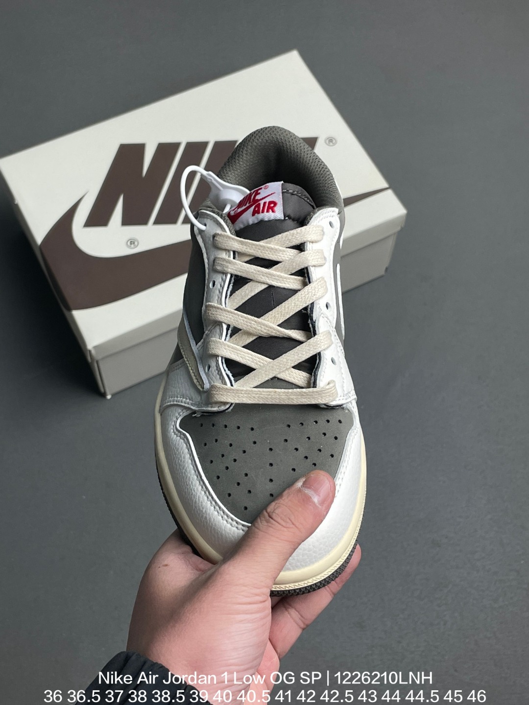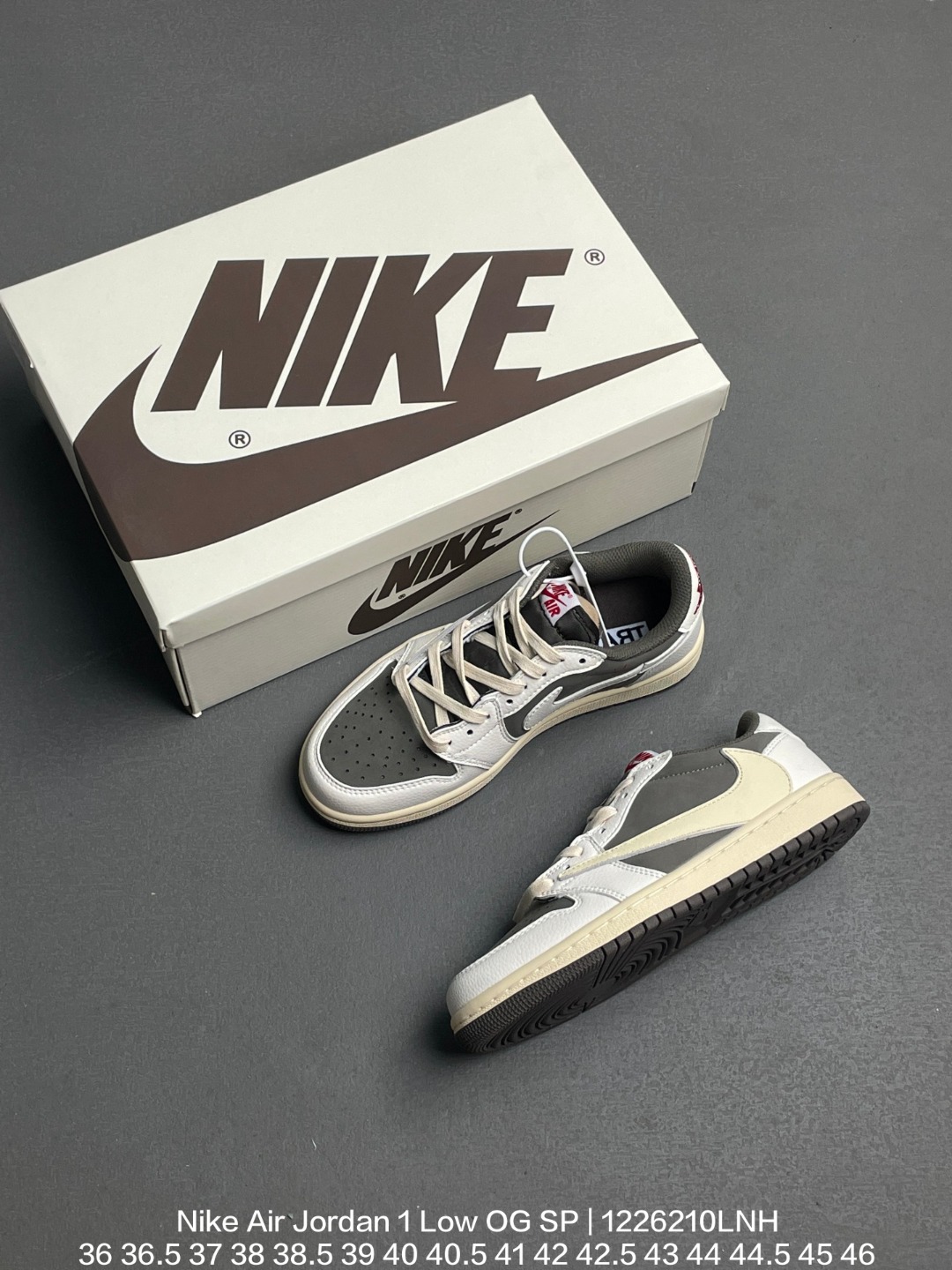 Jordan 乔丹 采用牛培皮革鞋面 内置气垫及耐磨橡胶大底 倒钩AJ1 当红嘻哈歌手特拉维斯 斯科特携手藤原浩主理品牌fragment design x Travis Scott x Nike Air Jordan 1 Low OG SP Black White Grey AJ1乔丹一代经典低帮文化百搭休闲运动篮球鞋