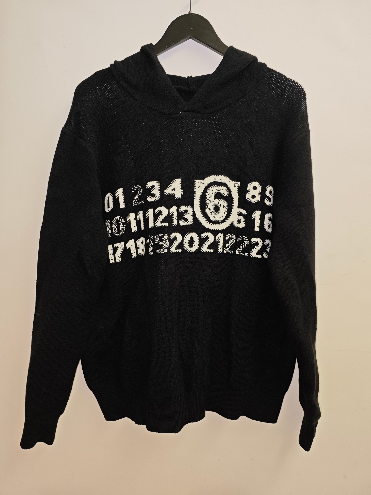 批 MM6 Maison Margiela SS25 反转徽标设计感数字刺绣宽松连帽针织衫中性风毛衣 男女同款款