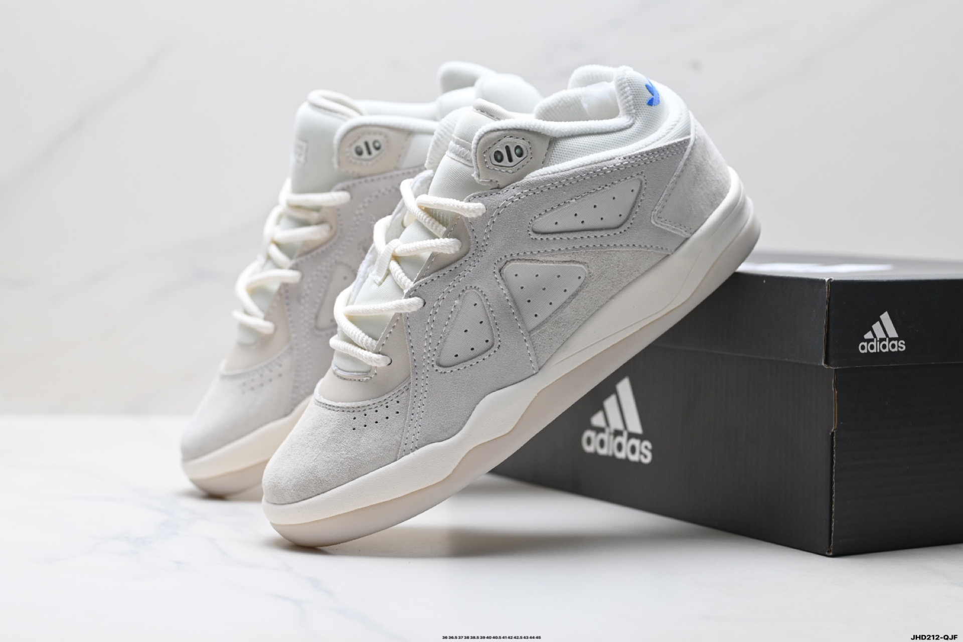 公司级阿迪达斯ADIDAS BADBO 1 0 BadBo 1 0 将篮球鞋的结构与日常舒适性巧妙融合 延续 adidas BW Army 的复古基因 并以鞋面上独特的三角形麂皮切割设计为标志性细节 在现代感与怀旧气质之间取得平衡 首发配色采用白色与浅棕麂皮拼接